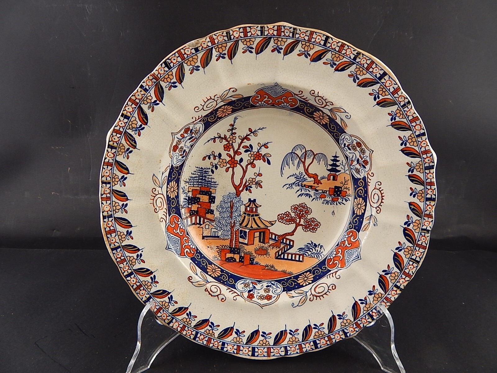 ANTICO PIATTO FONDO CERAMICA MASON'S FENTON STONE WORKS GIARDINO ORIENTALE POLICROMO