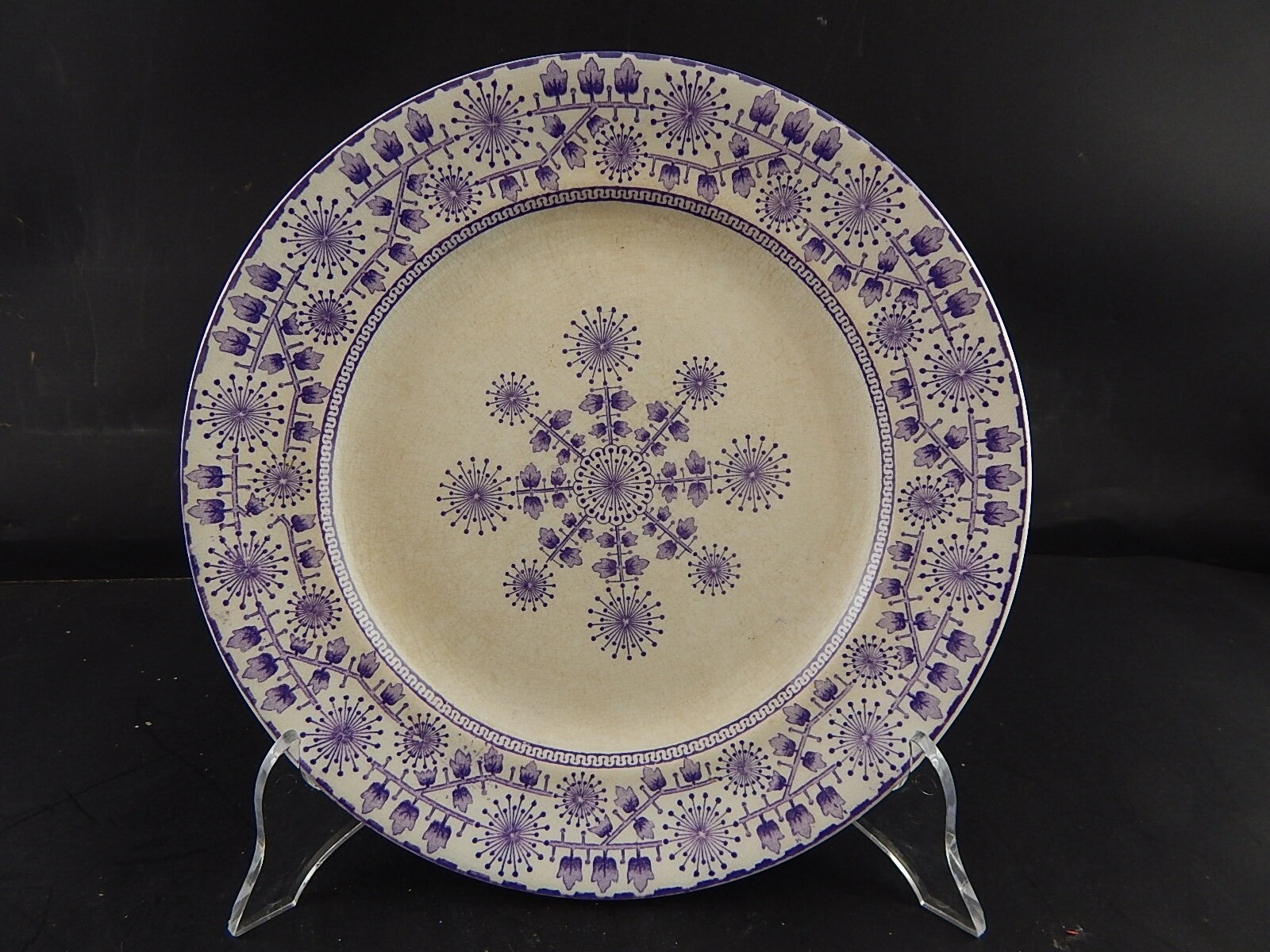 ANTICO PIATTO CERAMICA META' 800 GUSTAVSBERG TRANSFERWARE VIOLA #9430