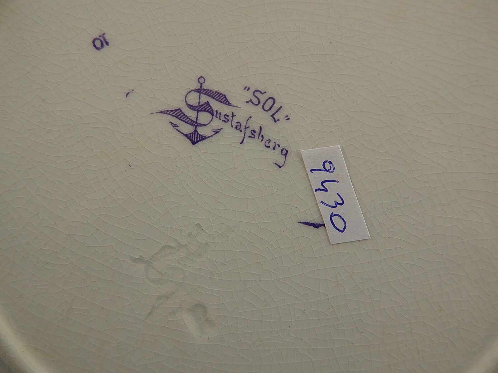 In questa inserzione viene presentato un piatto realizzato nella seconda metà del 1800 dalla rinomata manifattura svedese Gustavsberg. Il piatto è decorato con stampa a mano in viola e misura 24 cm di diametro