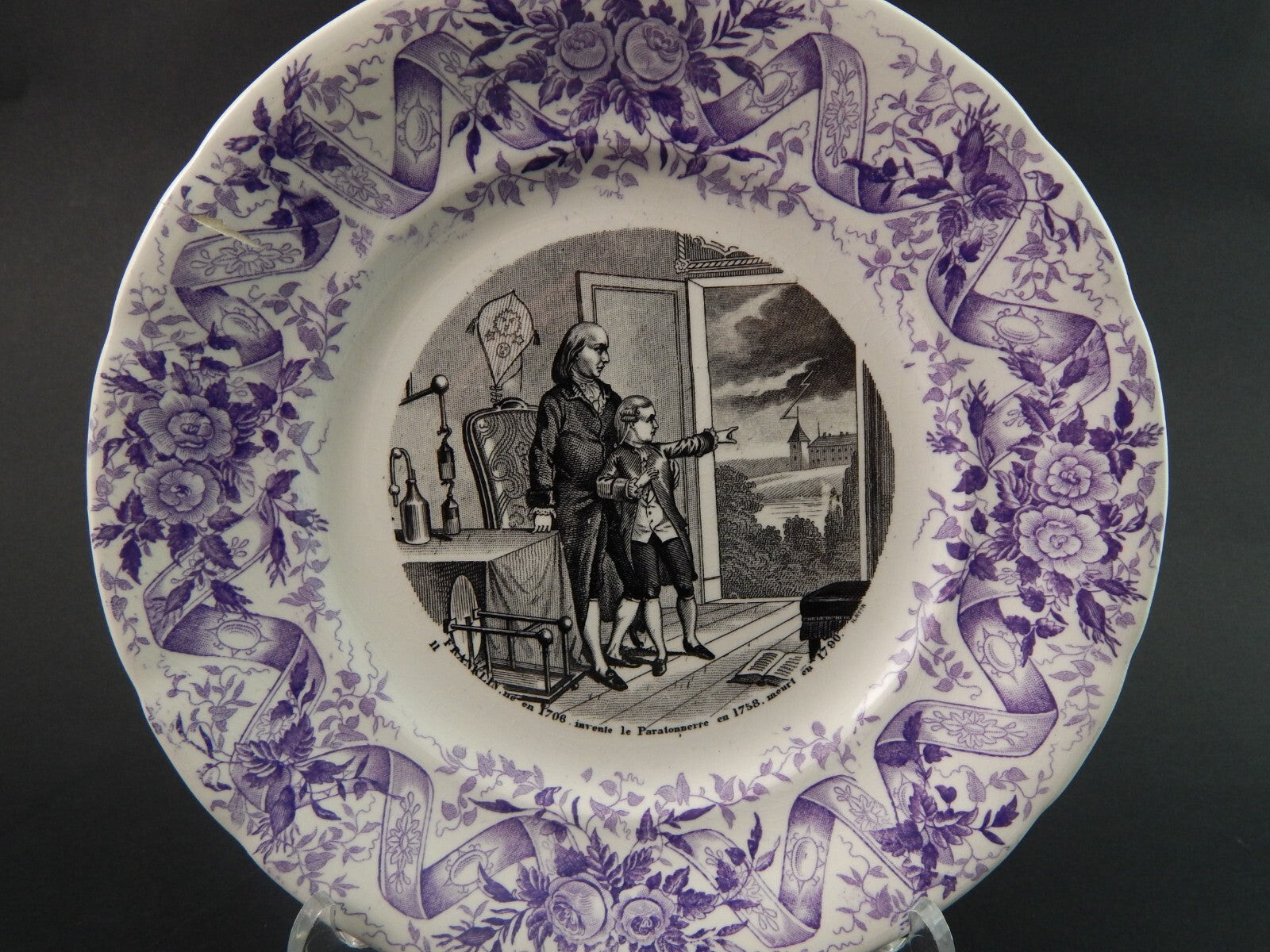 ANTICO PIATTO CERAMICA OPAQUE DE SARREGUEMINES 1800 COLLEZIONE INVENZIONI #1500