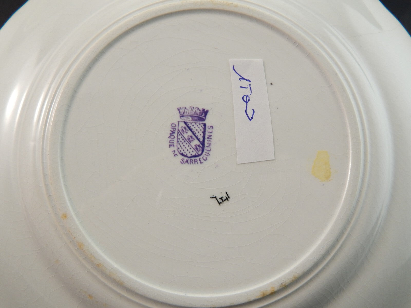 In questa inserzione viene presentato un antico piatto in ceramica risalente alla fine del 1800 realizzato in Francia dalla manifattura Opaque de Sarreguemines.