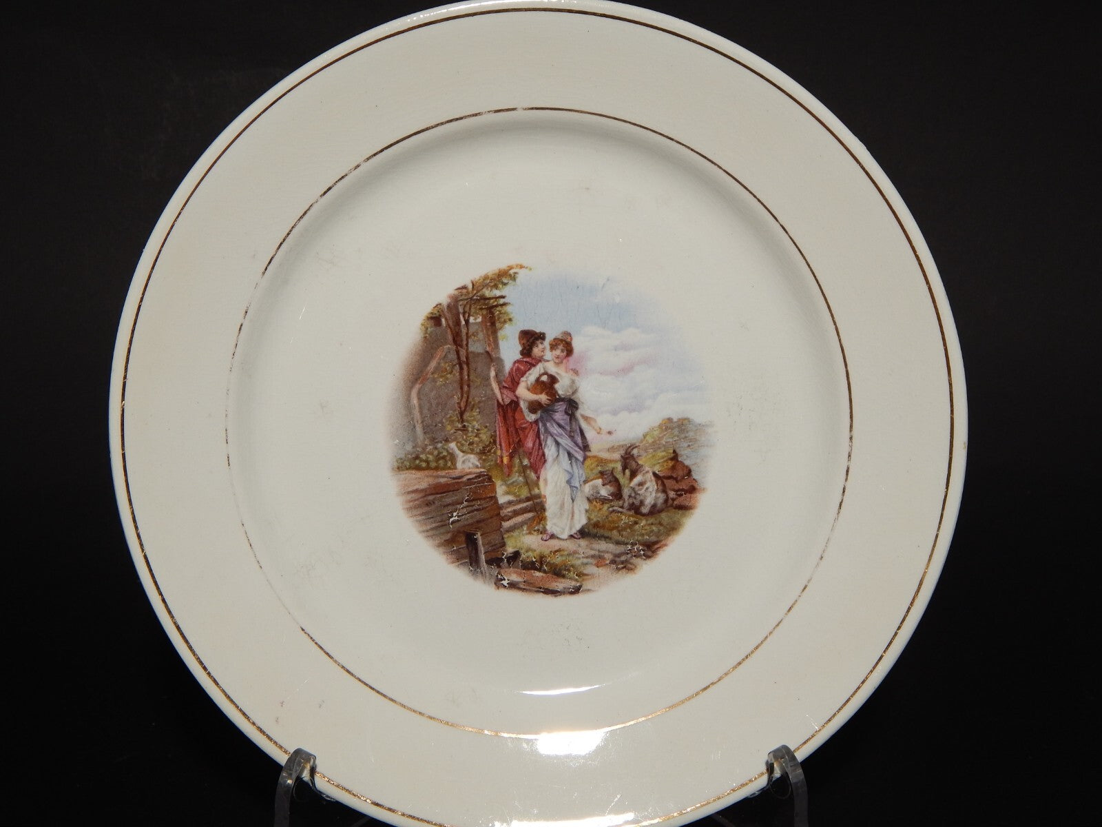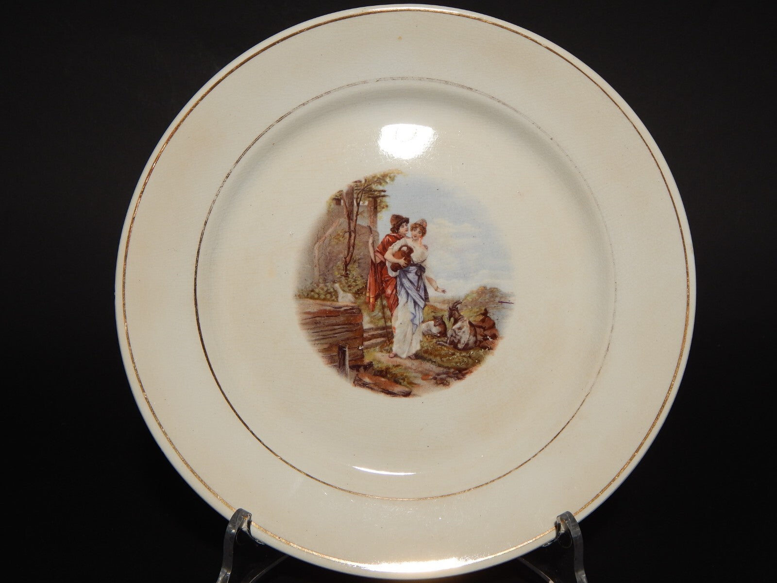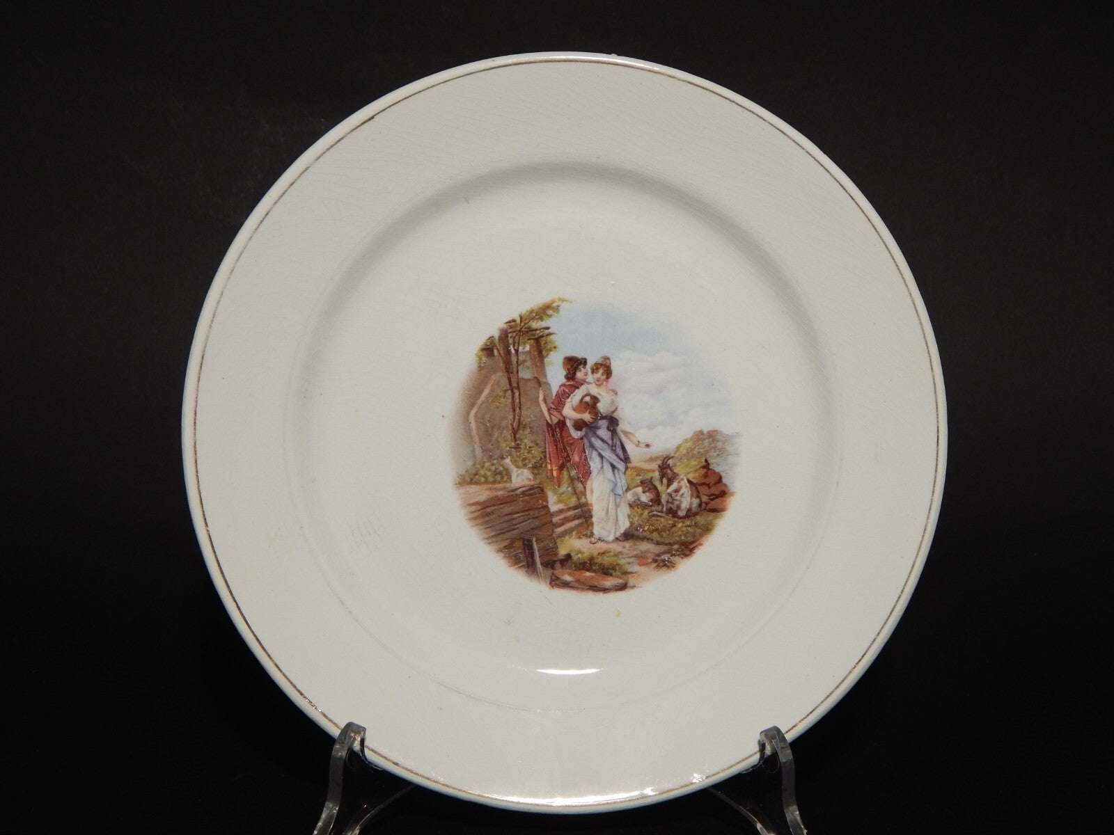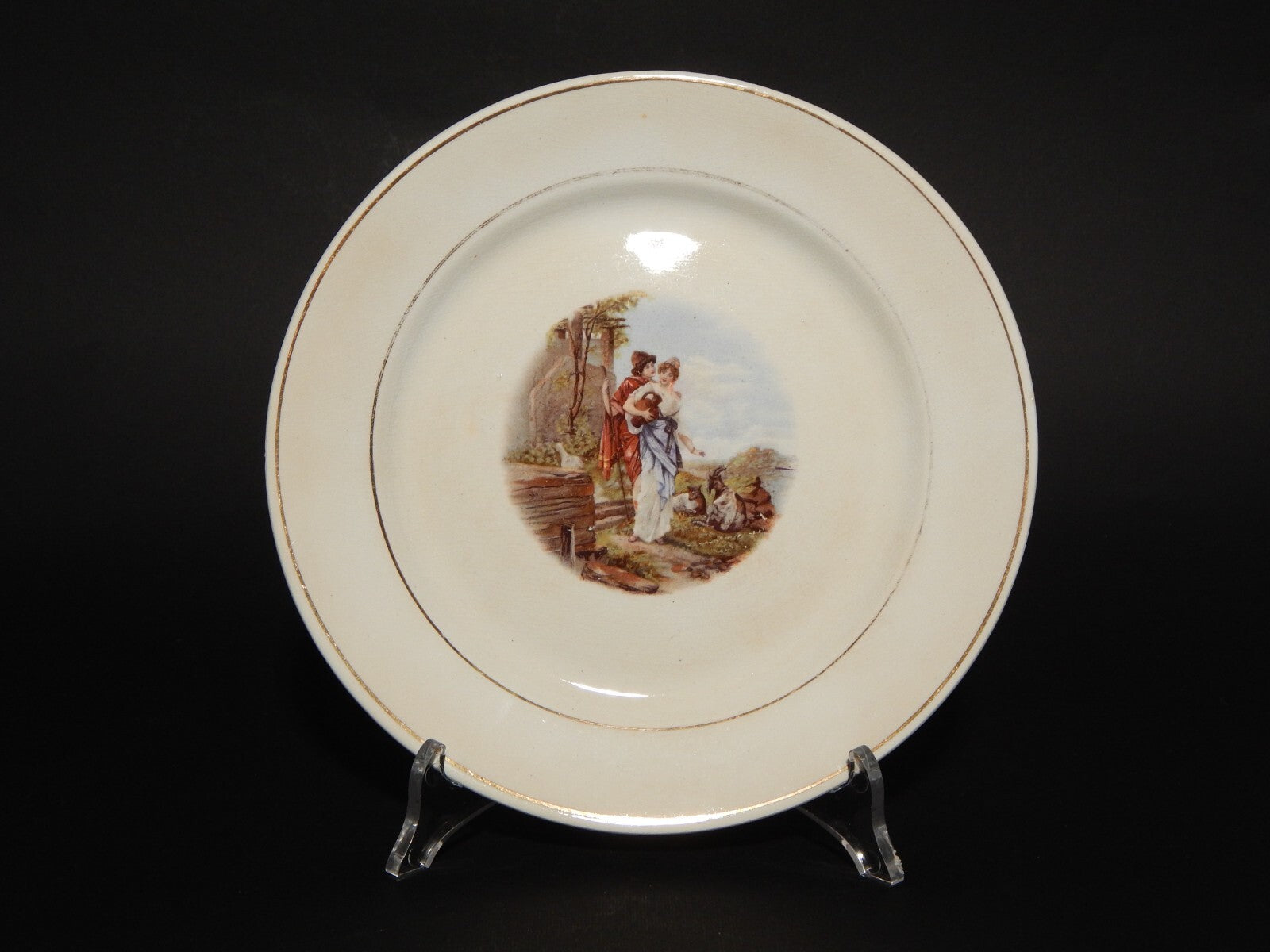 ANTICO PIATTO CERAMICA RICHARD MILANO DECORO SCENA BUCOLICA PRIMO 900