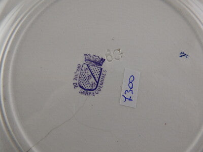 In questa inserzione viene presentato un antico piatto in ceramica risalente alla fine del 1800 realizzato in Francia dalla manifattura Sarreguemines.