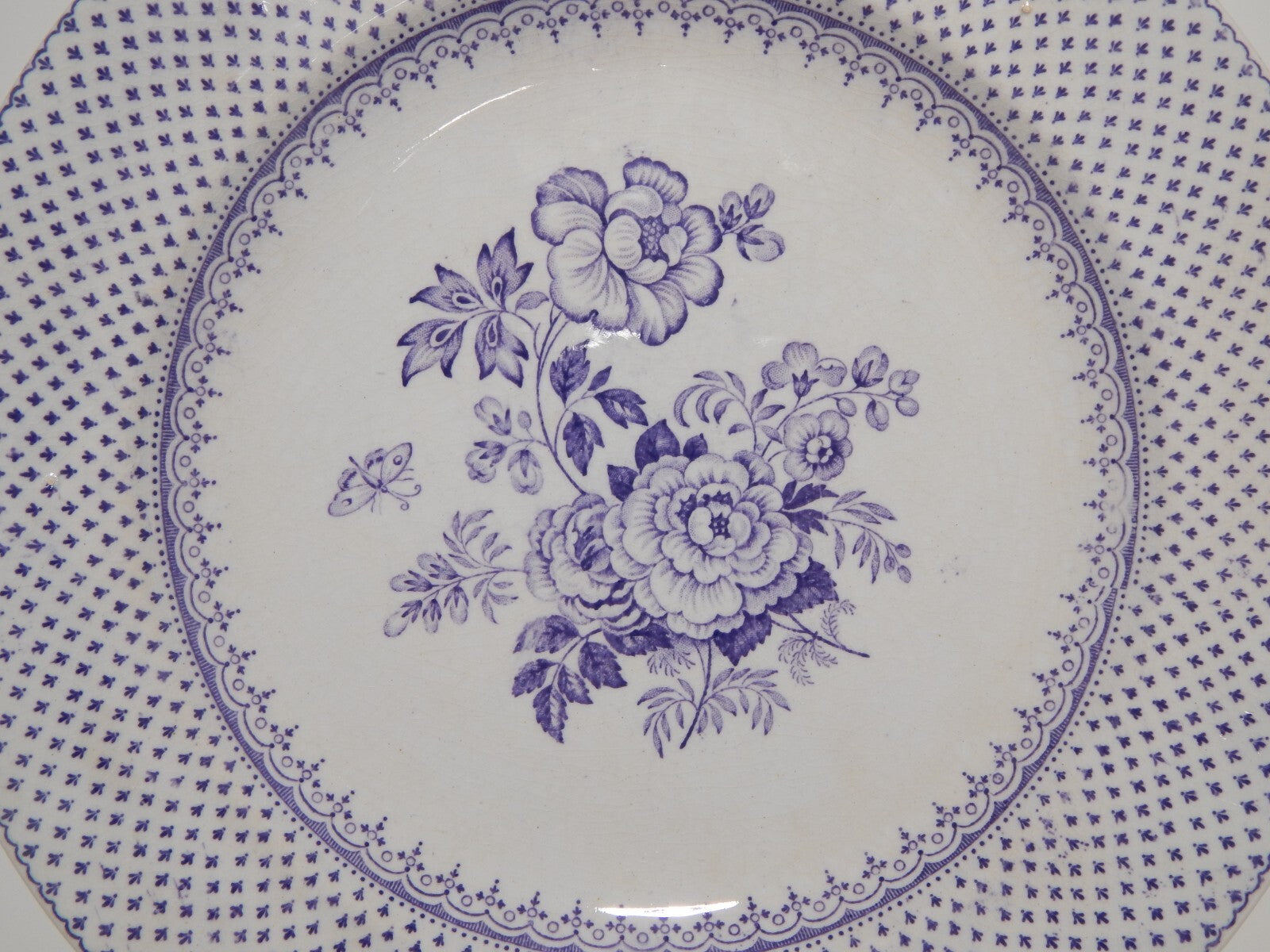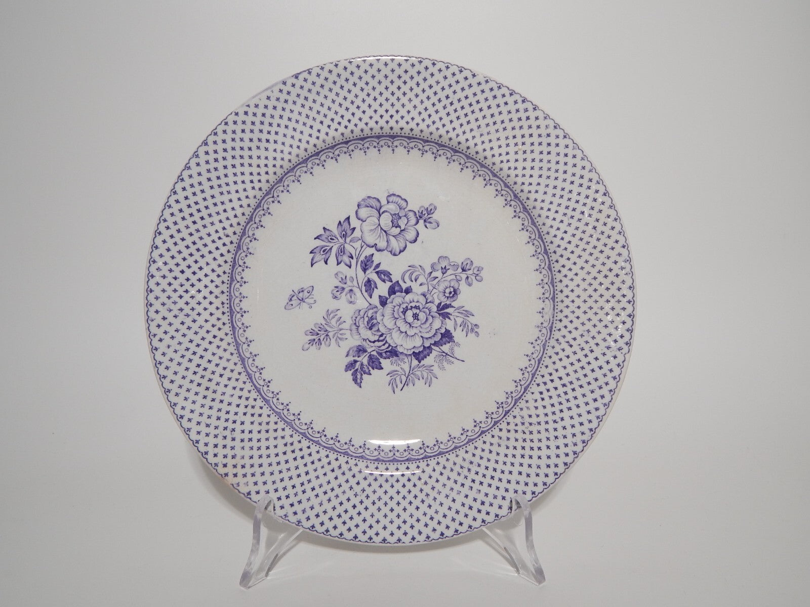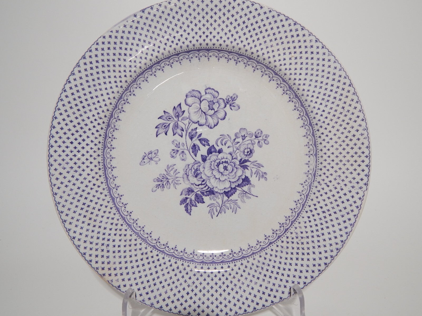 ANTICO PIATTO CERAMICA STAFFORDSHIRE PRIMAVESI DEL 1860 ERMINE BORDER VIOLA #