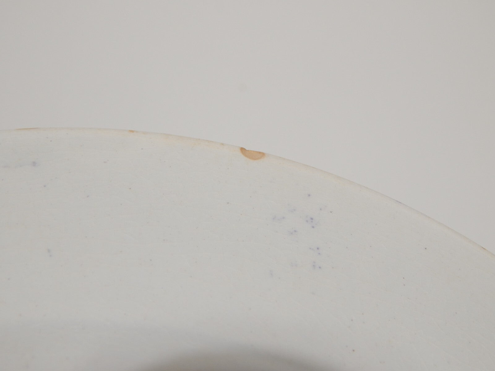 Il piatto piano stampato a mano sotto smalto con decoro Ermine Border in viola misura 23,5 cm di diametro, come si può vedere dalle foto presenta una minima scheggiatura sul retro
