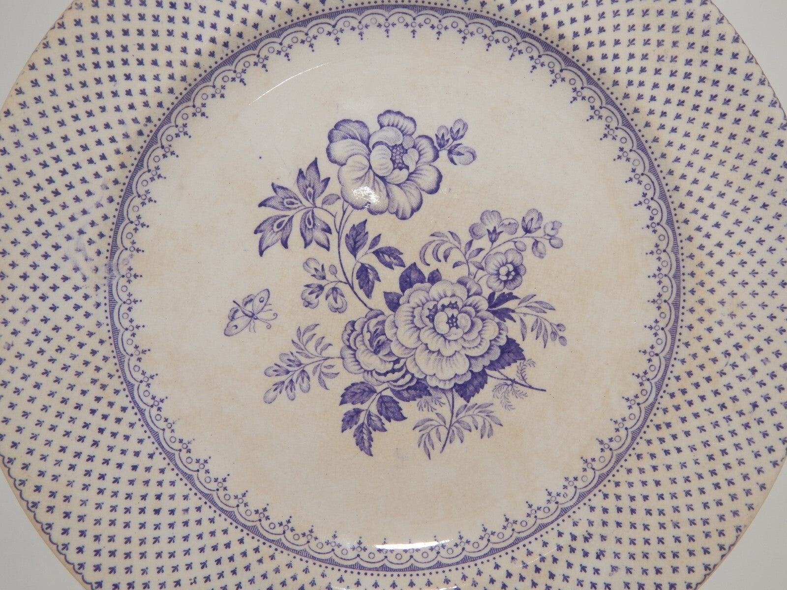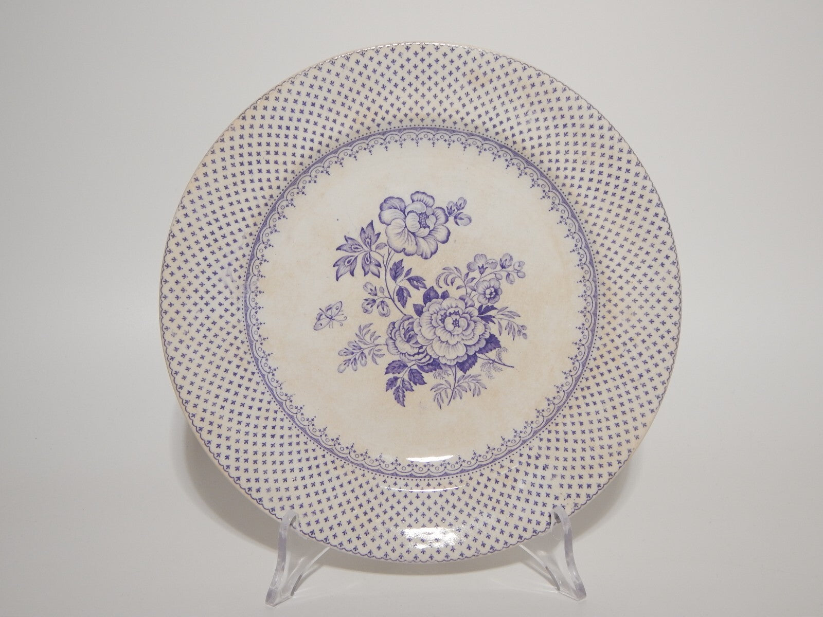 ANTICO PIATTO CERAMICA STAFFORDSHIRE PRIMAVESI DEL 1860 ERMINE BORDER VIOLA ##