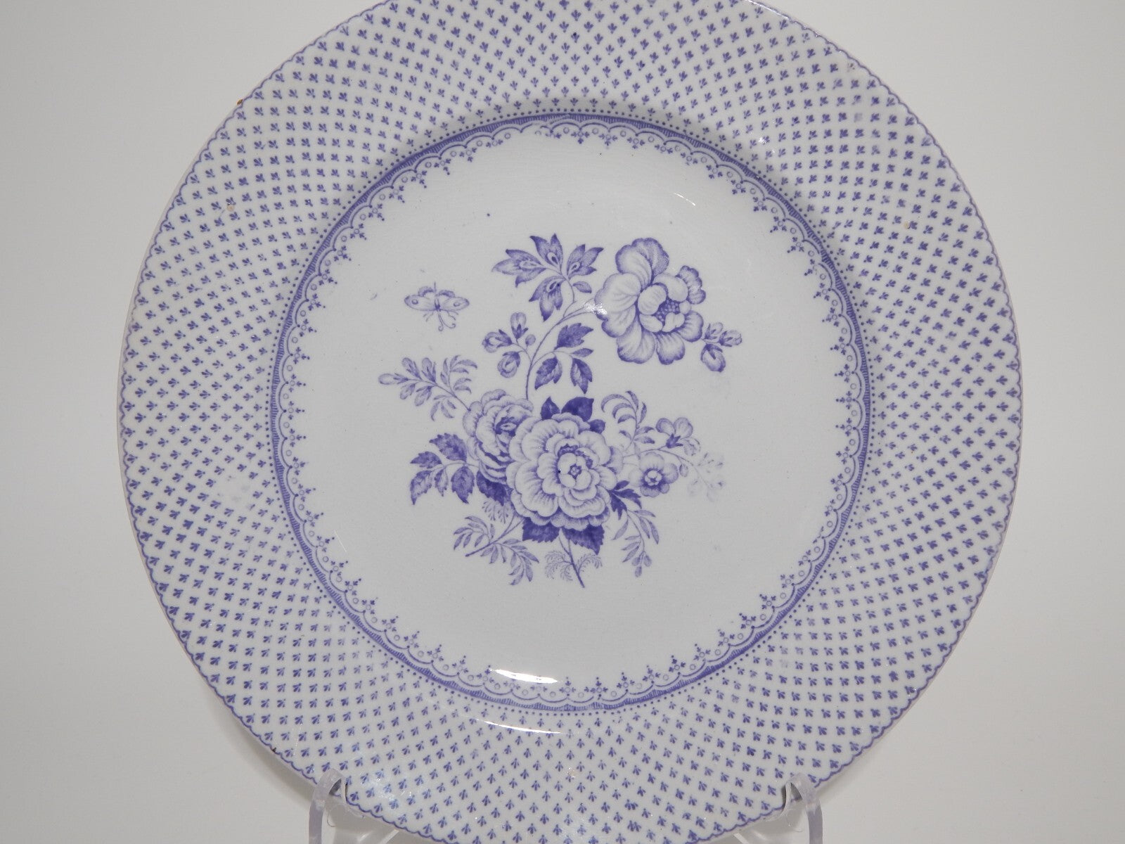 ANTICO PIATTO CERAMICA STAFFORDSHIRE PRIMAVESI DEL 1860 ERMINE BORDER VIOLA