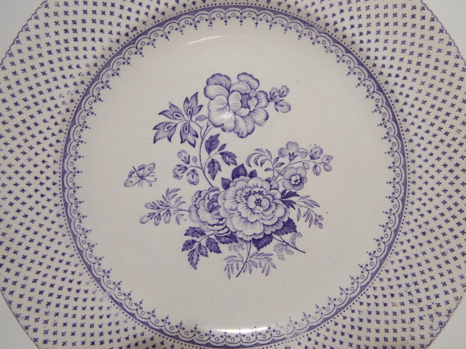 ANTICO PIATTO CERAMICA STAFFORDSHIRE PRIMAVESI DEL 1860 ERMINE BORDER VIOLA ####