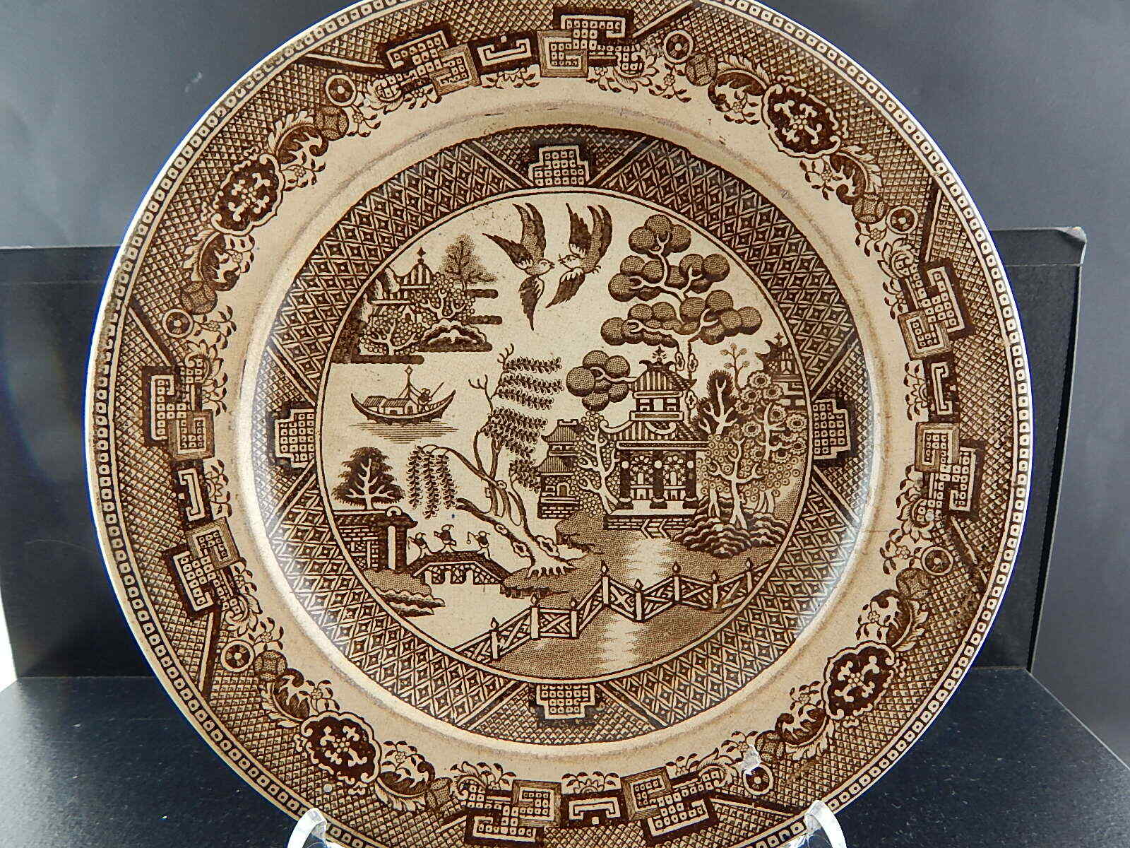 Il piatto con decoro Willow misura 22 cm., per le condizioni vedere le foto, come ci si aspetta da oggetti di quest'epoca, il piatto mostra segni del tempo e di usura, pur restando un bell'oggetto di antiquariato sempre più raro.