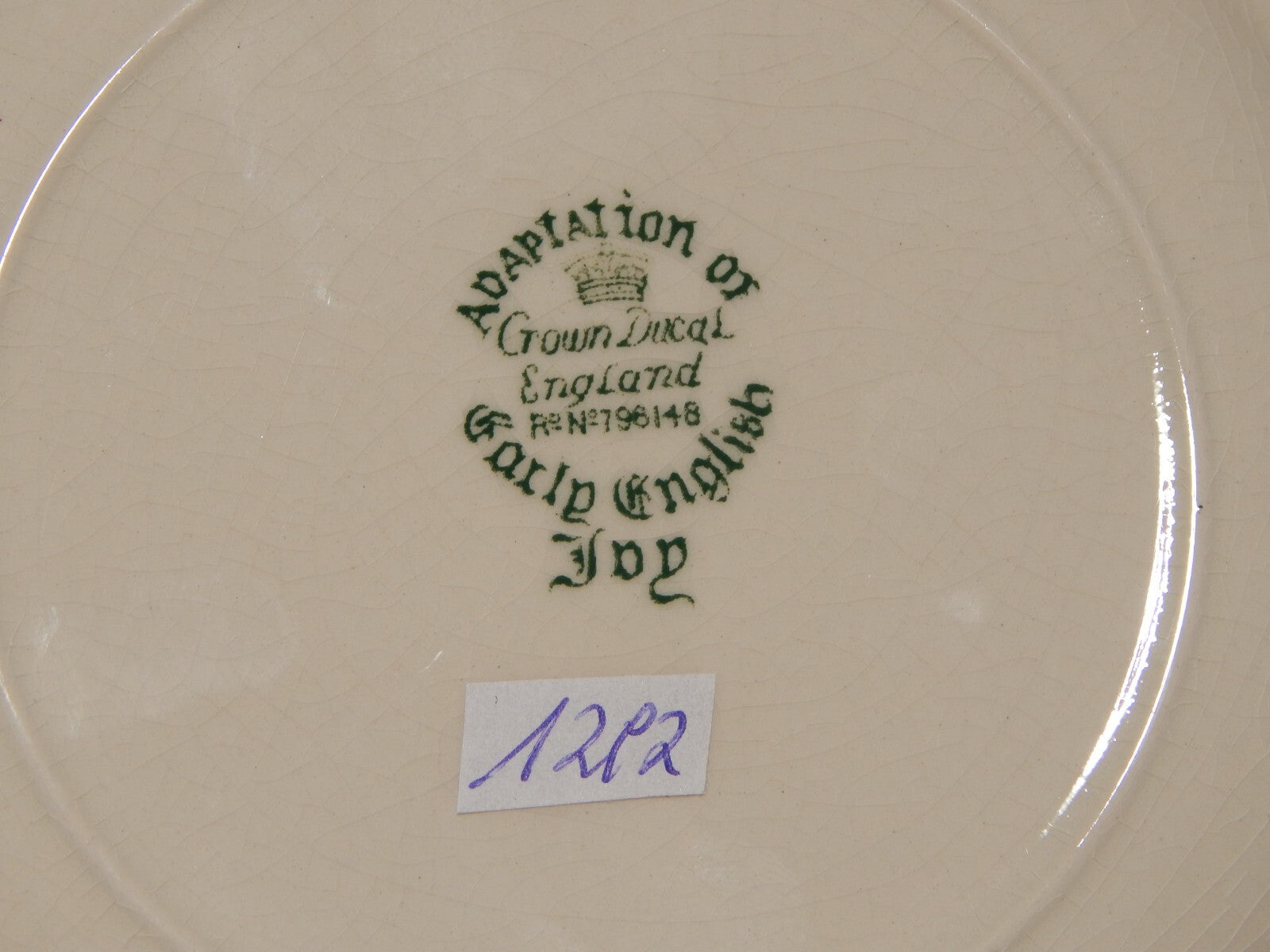 In questa inserzione viene presentato un piatto realizzato dalla manifattura inglese Crown Ducal nel decoro stampato a mano Adaptation of Early English Joy