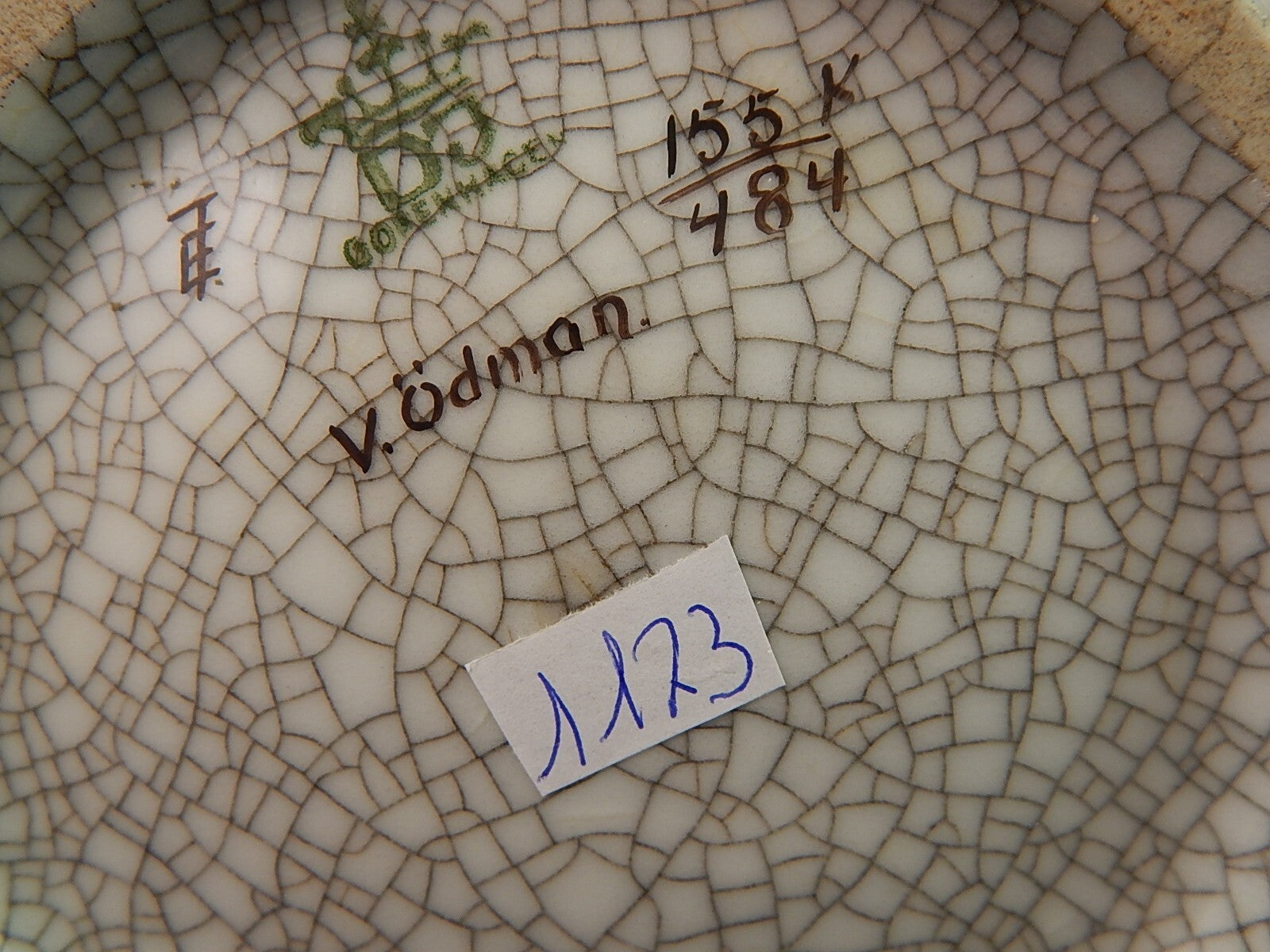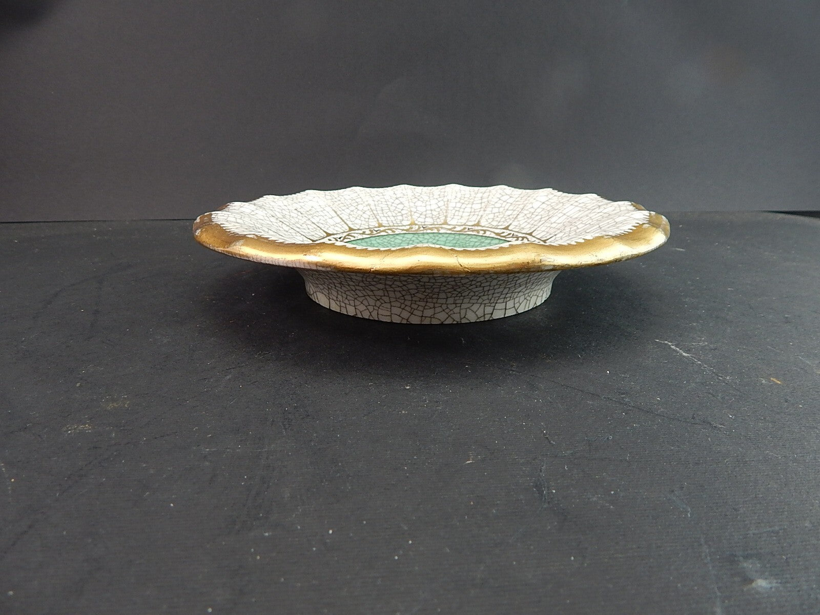 ANTICO PIATTO DECORATIVO PORCELLANA COPENHAGEN DAHL JENSEN CRACKLE DIPINTO MANO