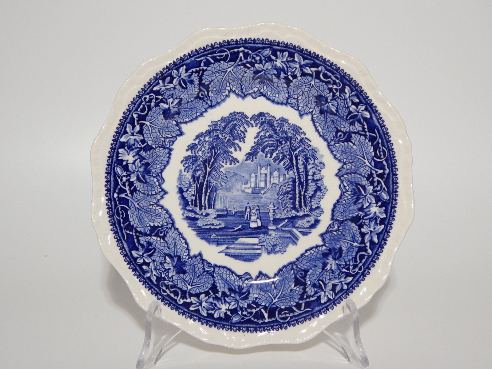 ANTICO PIATTO DESSERT CERAMICA INGLESE MASON’S DECORO VISTA BIANCO BLU CM 20
