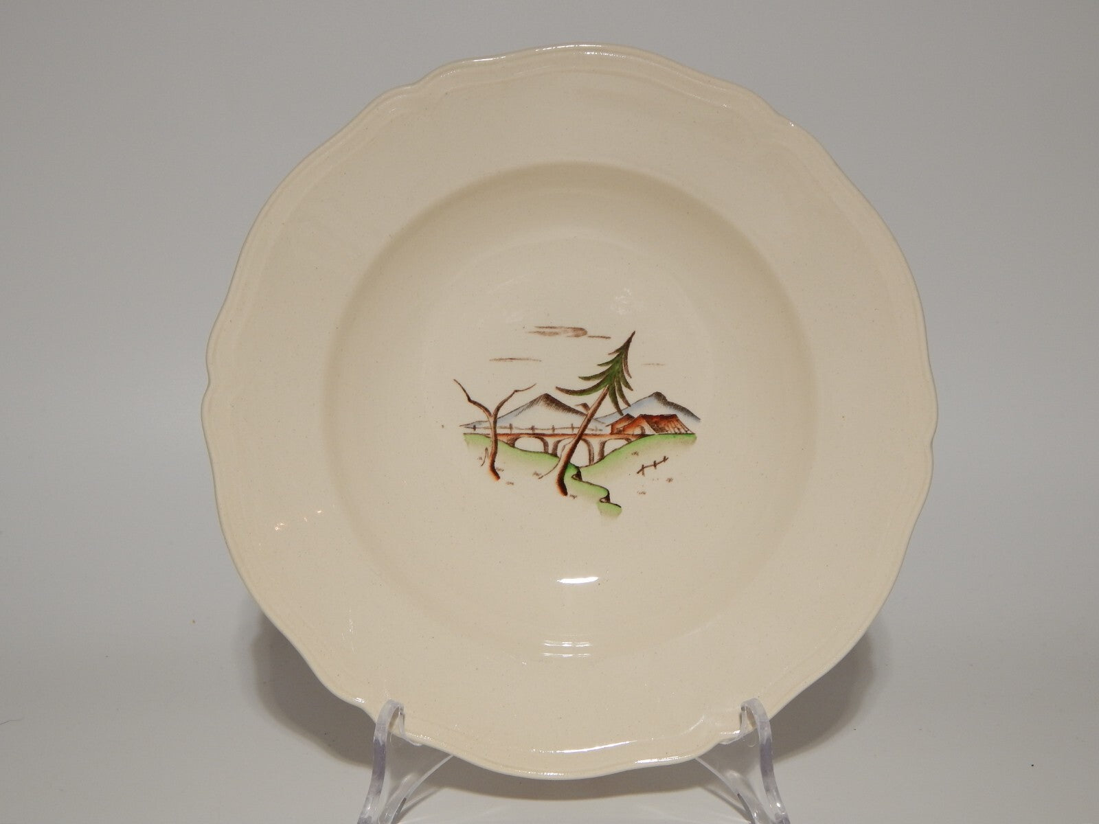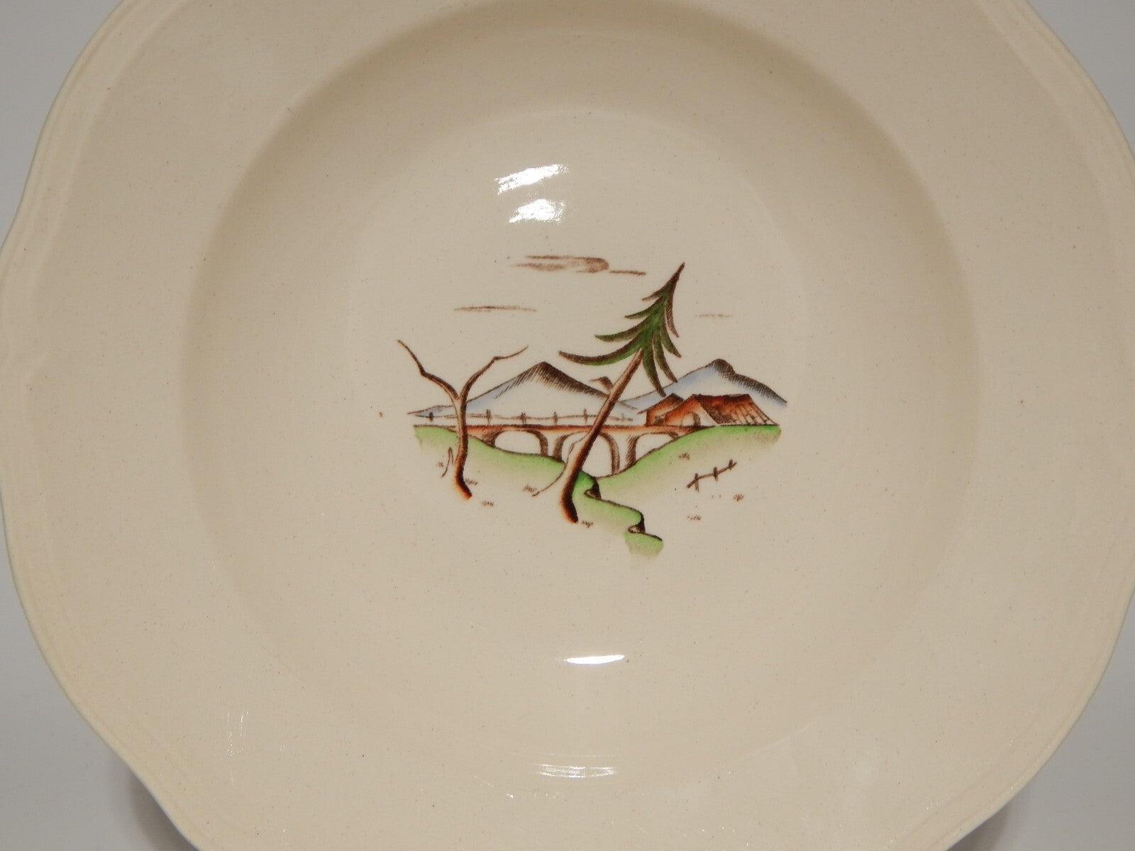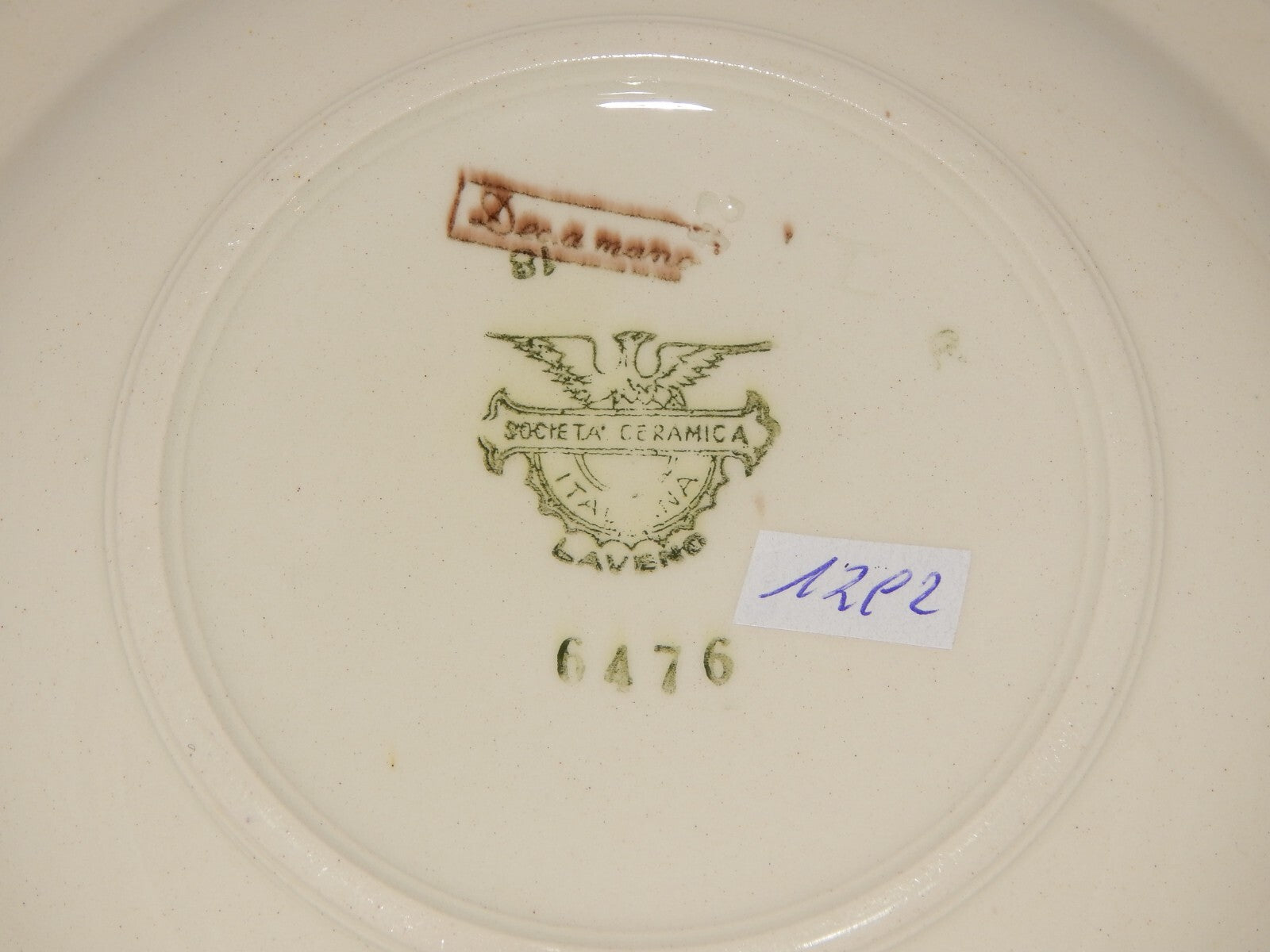 In questa inserzione viene presentato un raro piatto in terraglia dura con la forma cosiddetta "Vecchia Milano" ed è decorato a mano. Fu realizzato nei primi decenni del 900 sotto la direzione artistica di Guido Andlovitz. E' un esempio significativo di quella produzione d'uso fresca ed elegante che fece il successo commerciale della S. C. I sotto la guida dell'Andlovitz.