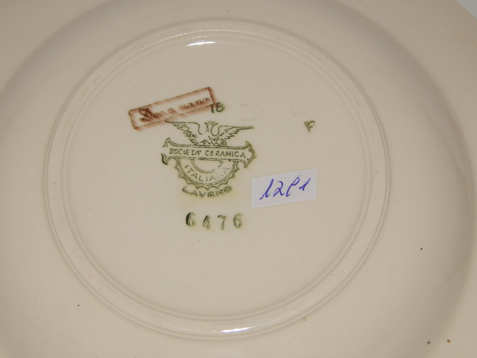 In questa inserzione viene presentato un raro piatto in terraglia dura con la forma cosiddetta "Vecchia Milano" ed è decorato a mano. Fu realizzato nei primi decenni del 900 sotto la direzione artistica di Guido Andlovitz. E' un esempio significativo di quella produzione d'uso fresca ed elegante che fece il successo commerciale della S. C. I sotto la guida dell'Andlovitz.