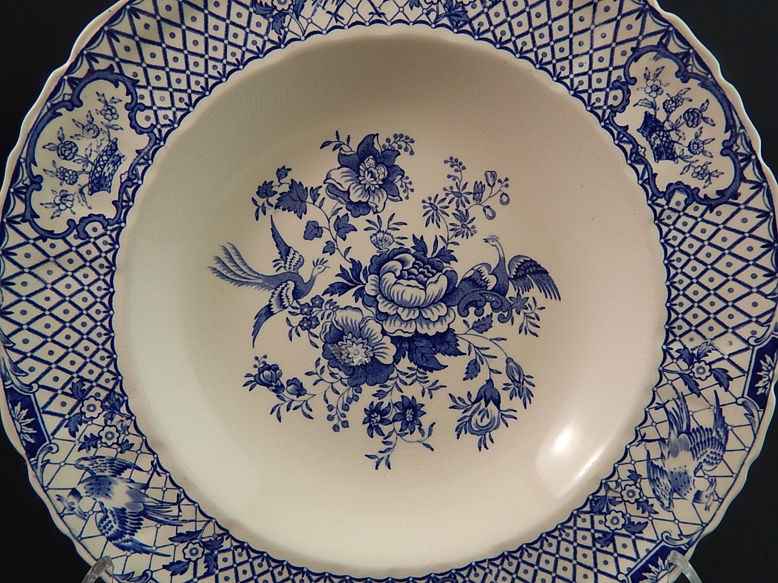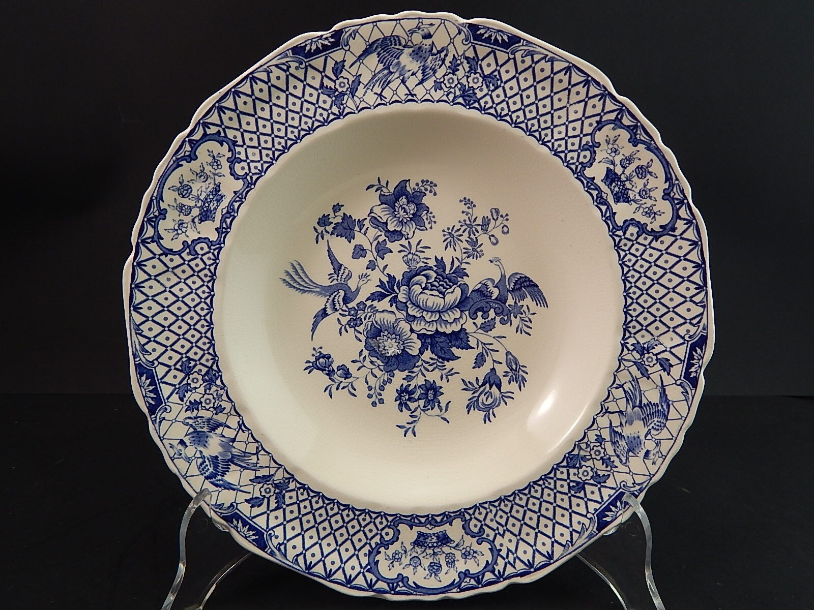 ANTICO PIATTO FONDO CM 25 CERAMICA INGLESE MASON’S DECORO STRATFORD BIANCO BLU