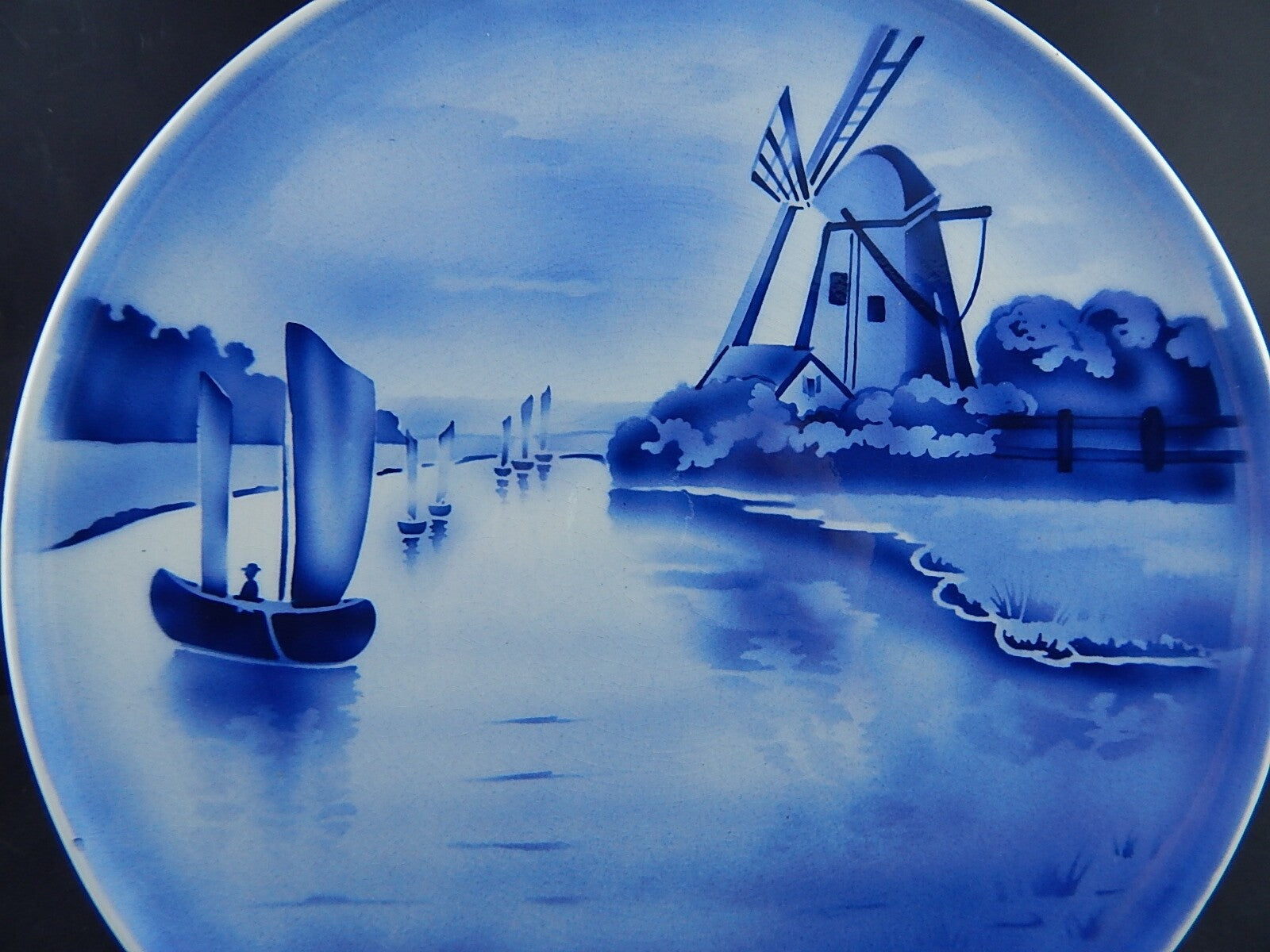 Il piatto misura 30 cm.di diametro e raffigura una marina con mulino a vento.