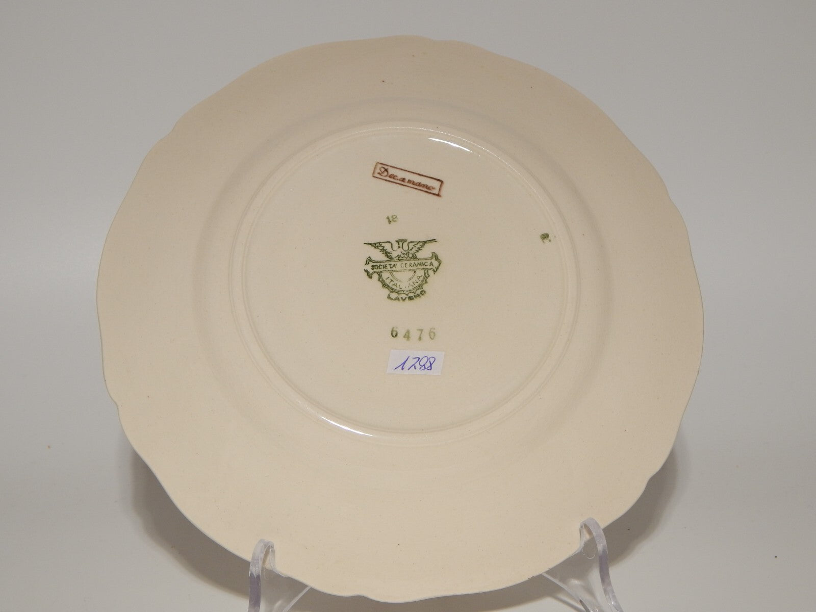 In questa inserzione viene presentato un raro piatto in terraglia dura con la forma cosiddetta "Vecchia Milano" ed è decorato a mano. Fu realizzato nei primi decenni del 900 sotto la direzione artistica di Guido Andlovitz. E' un esempio significativo di quella produzione d'uso fresca ed elegante che fece il successo commerciale della S. C. I sotto la guida dell'Andlovitz.
