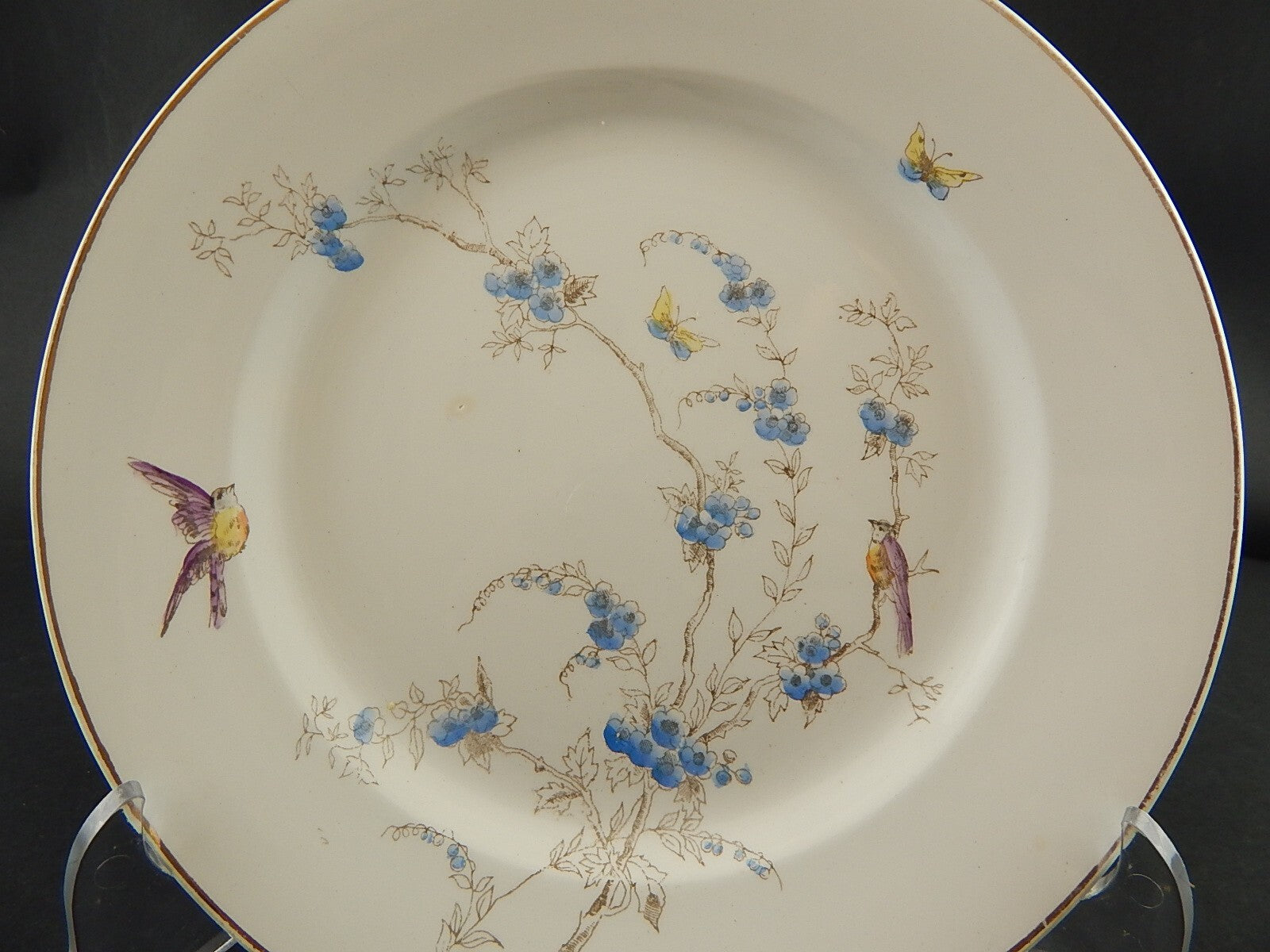 ANTICO PIATTO PIANO CERAMICA RICHARD MILANO FIORI FARFALLE UCCELLINI A757