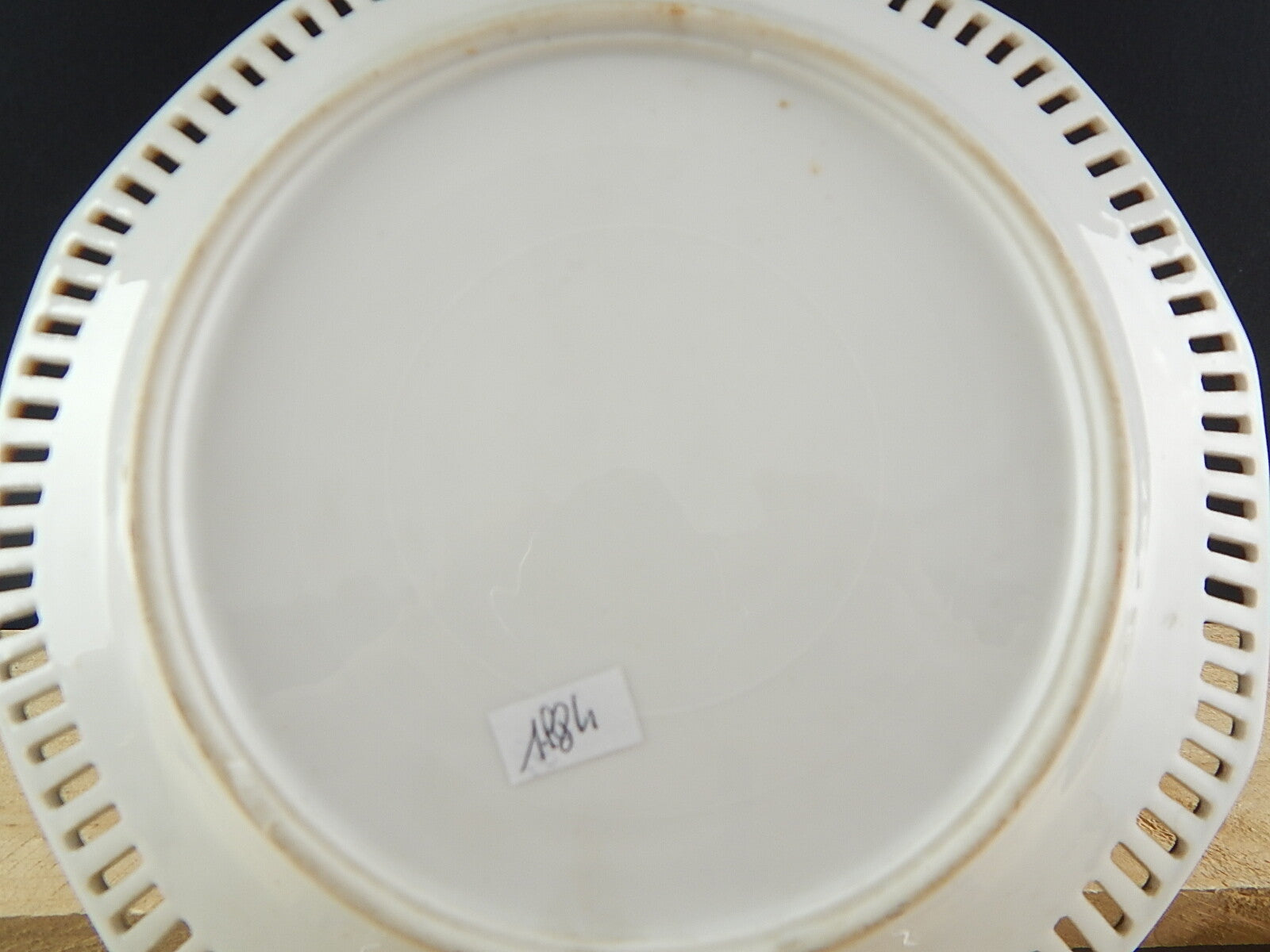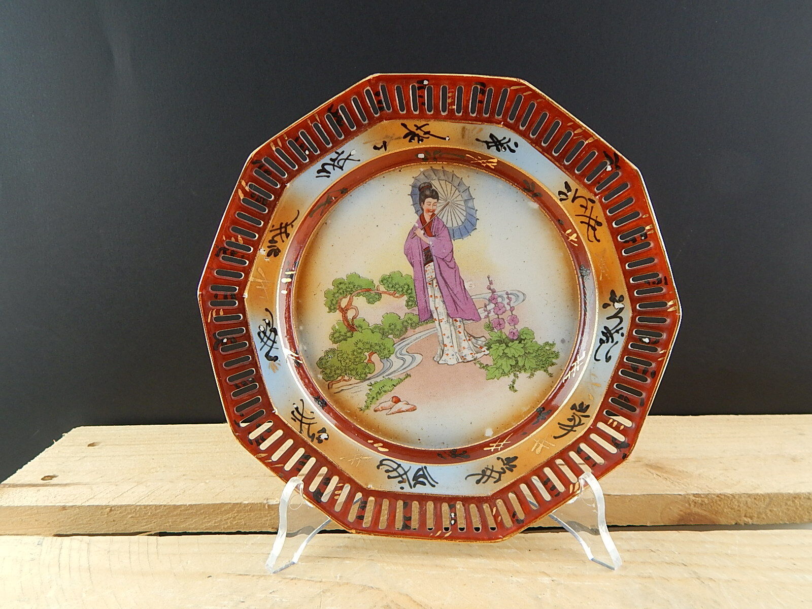 In questa inserzione viene presentata un antico piatto in porcellana con bordo traforato decorato con una scena orientale