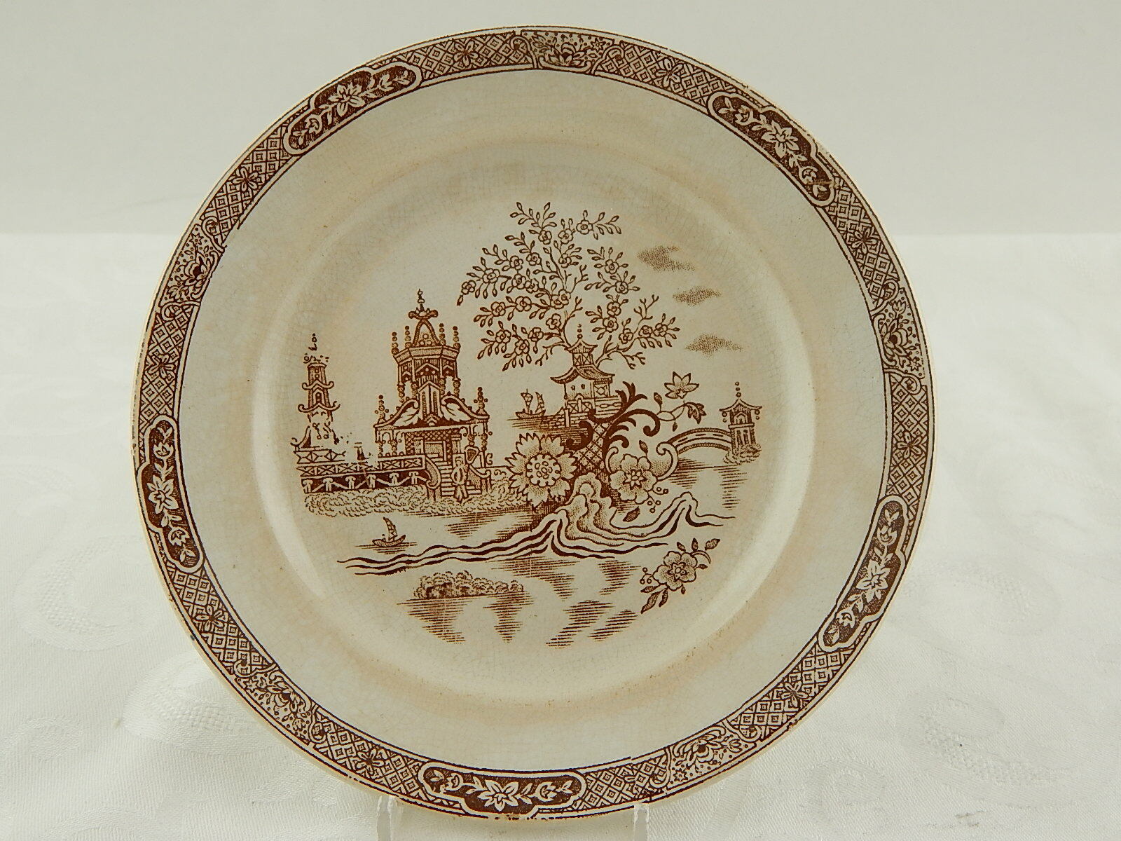 ANTICO PIATTO SECONDA META' 1800 SVEDESE GUSTAVSBERG DECORO GONG GONG