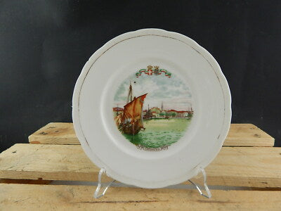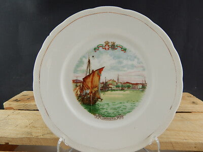 ANTICO PIATTO PORCELLANA GINORI CITTA' REDENTE CAPODISTRIA 1919 DECORATO A MANO