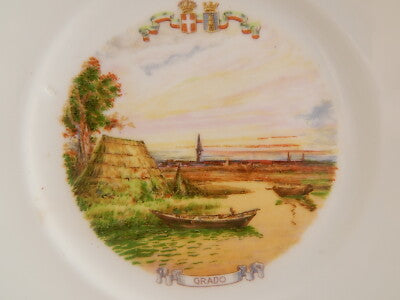 ANTICO PIATTO PORCELLANA GINORI CITTA' REDENTE GRADO 1919 STEMMA REGNO SABAUDO