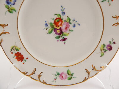 ANTICO PIATTO PORCELLANA PARIGI INIZIO 800 DIPINTO A MANO FIORI POLICROMI IMPERO