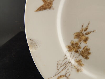 ANTICO PIATTO PORCELLANA RICHARD GINORI DIPINTO MANO FARFALLA UCCELLINO DIFETTO