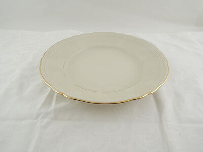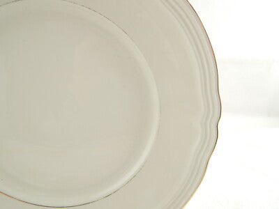 In questa inserzione viene presentato un antico piatto rotondo da portata risalente agli anni '30 in porcellana color avorio rifinita in oro zecchino, realizzato dalla famosa manifattura tedesca Seltmann Weiden Bavaria