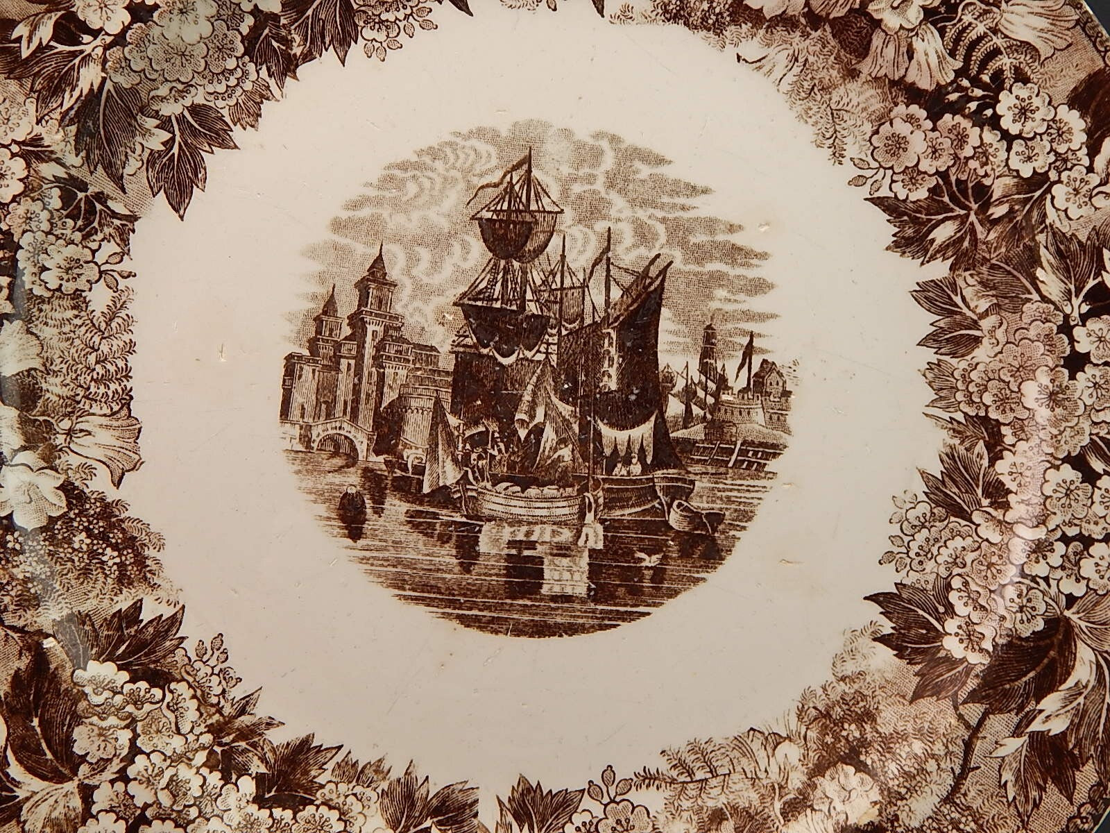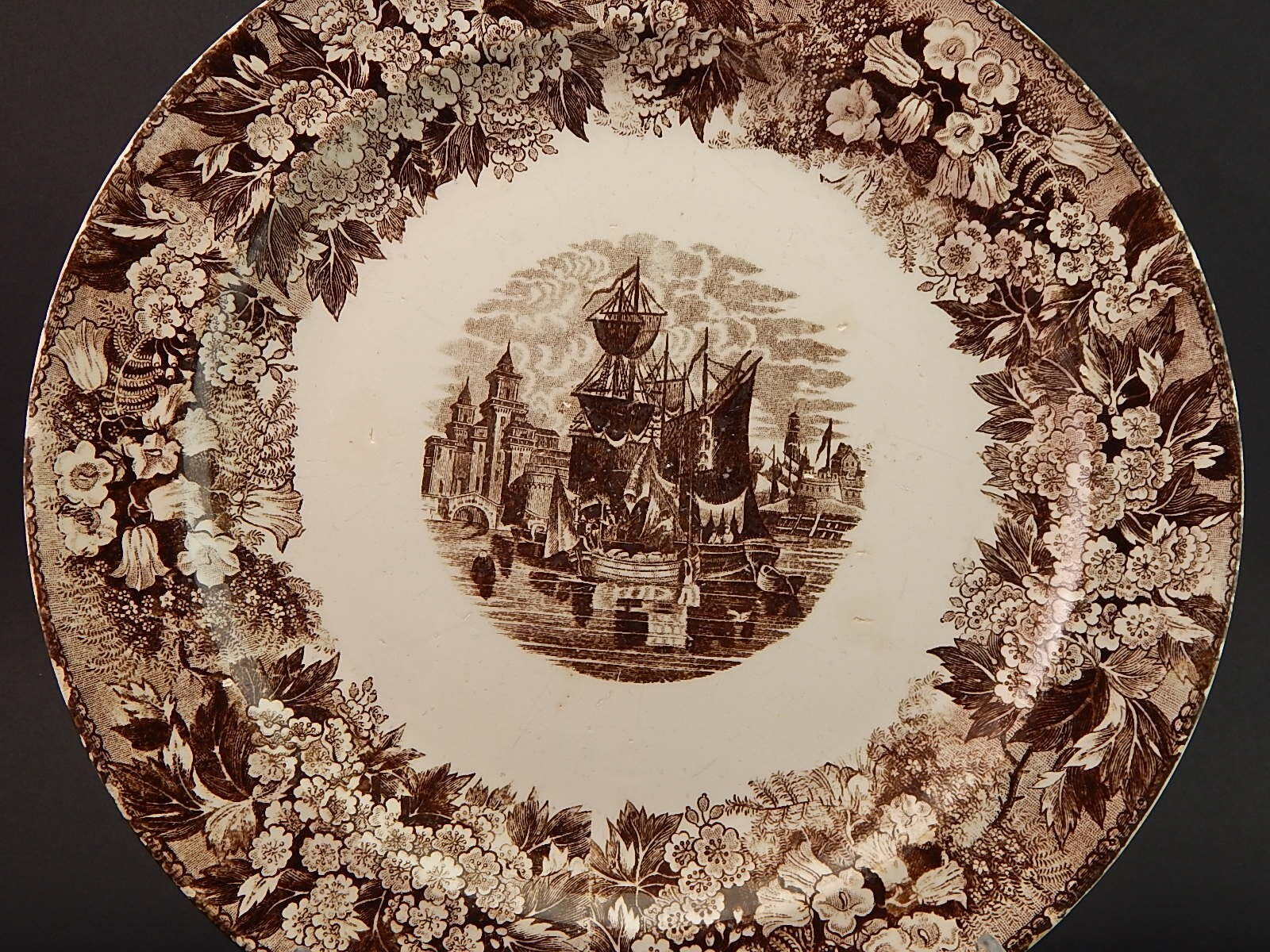 ANTICO PIATTO PORTATA VASSOIO PORCELLANA MANIFATTURA VENETA DECORO FERRARA