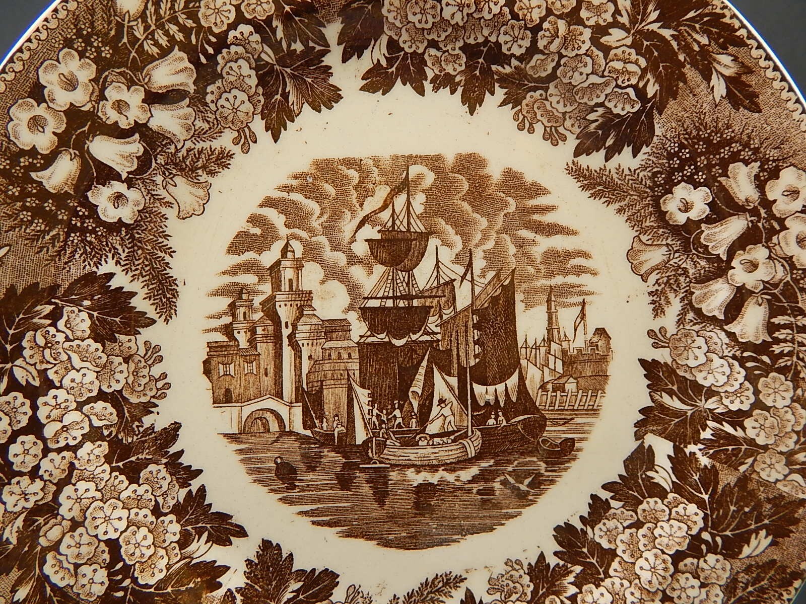 ANTICO PIATTO SEMI PORCELLANA RICHARD MILANO DECORO FERRARA META' 800