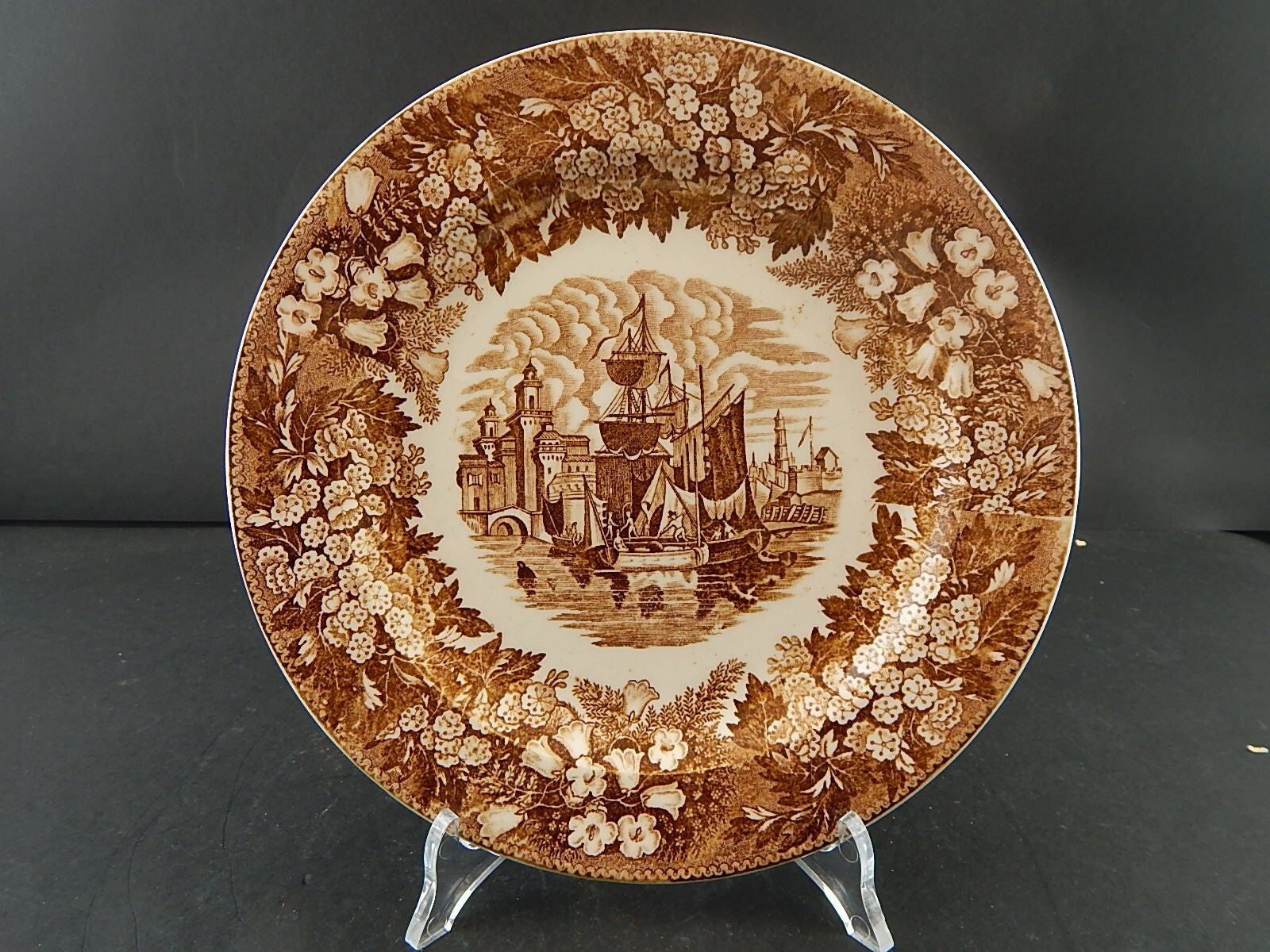 ANTICO PIATTO SEMI PORCELLANA RICHARD MILANO DECORO FERRARA META' 800