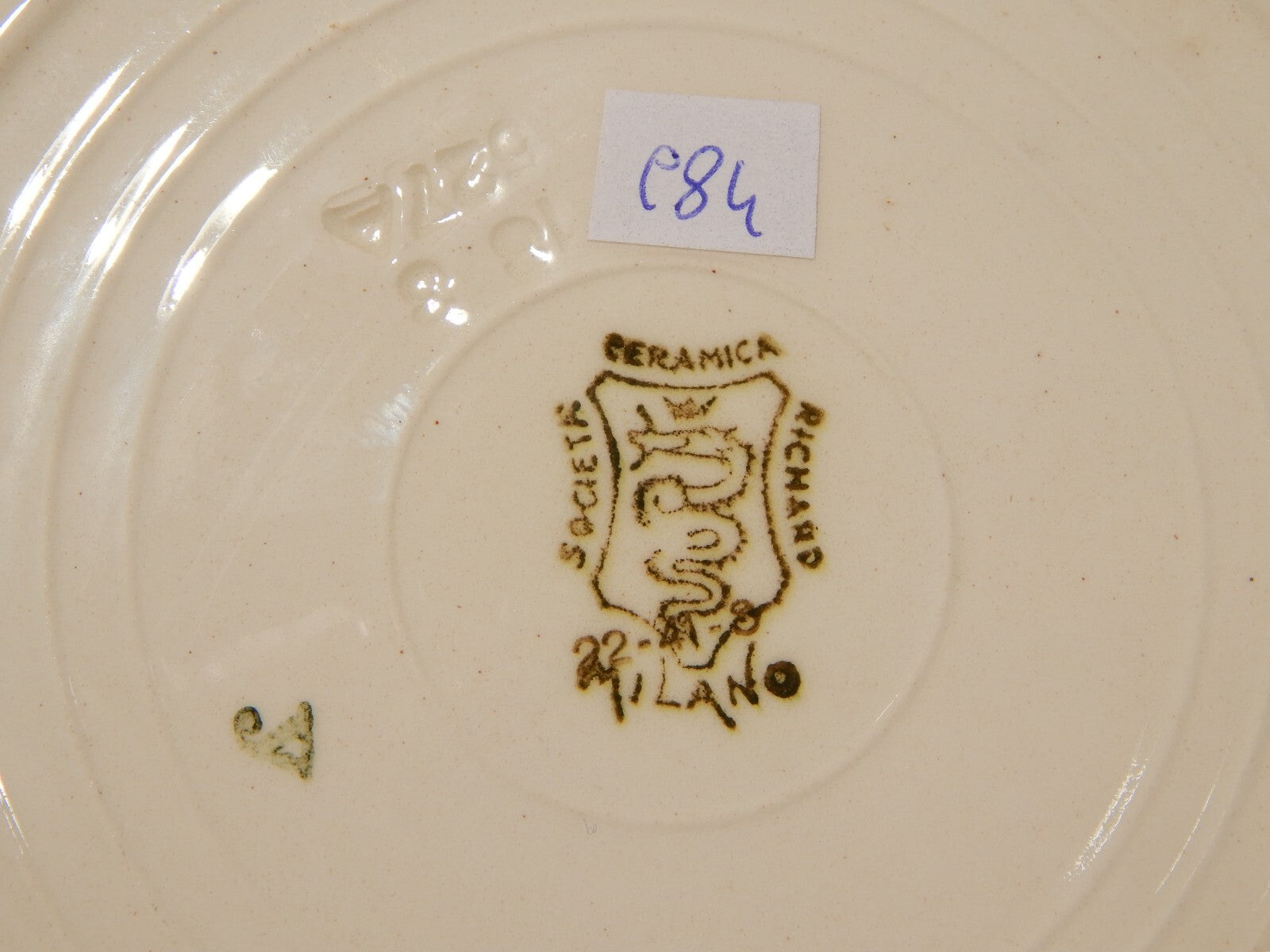 In questa inserzione viene presentato un antico piatto di ceramica della rinomata manifattura italiana di Milano Società Ceramica Richard