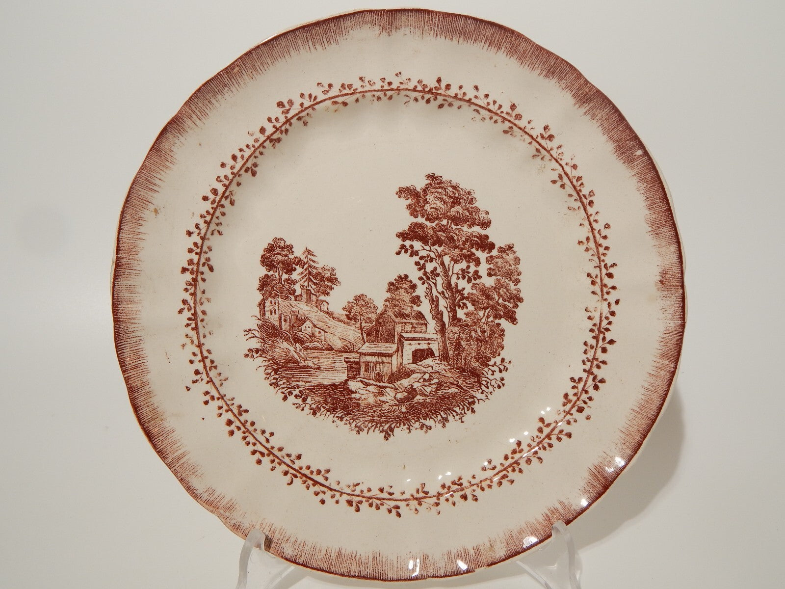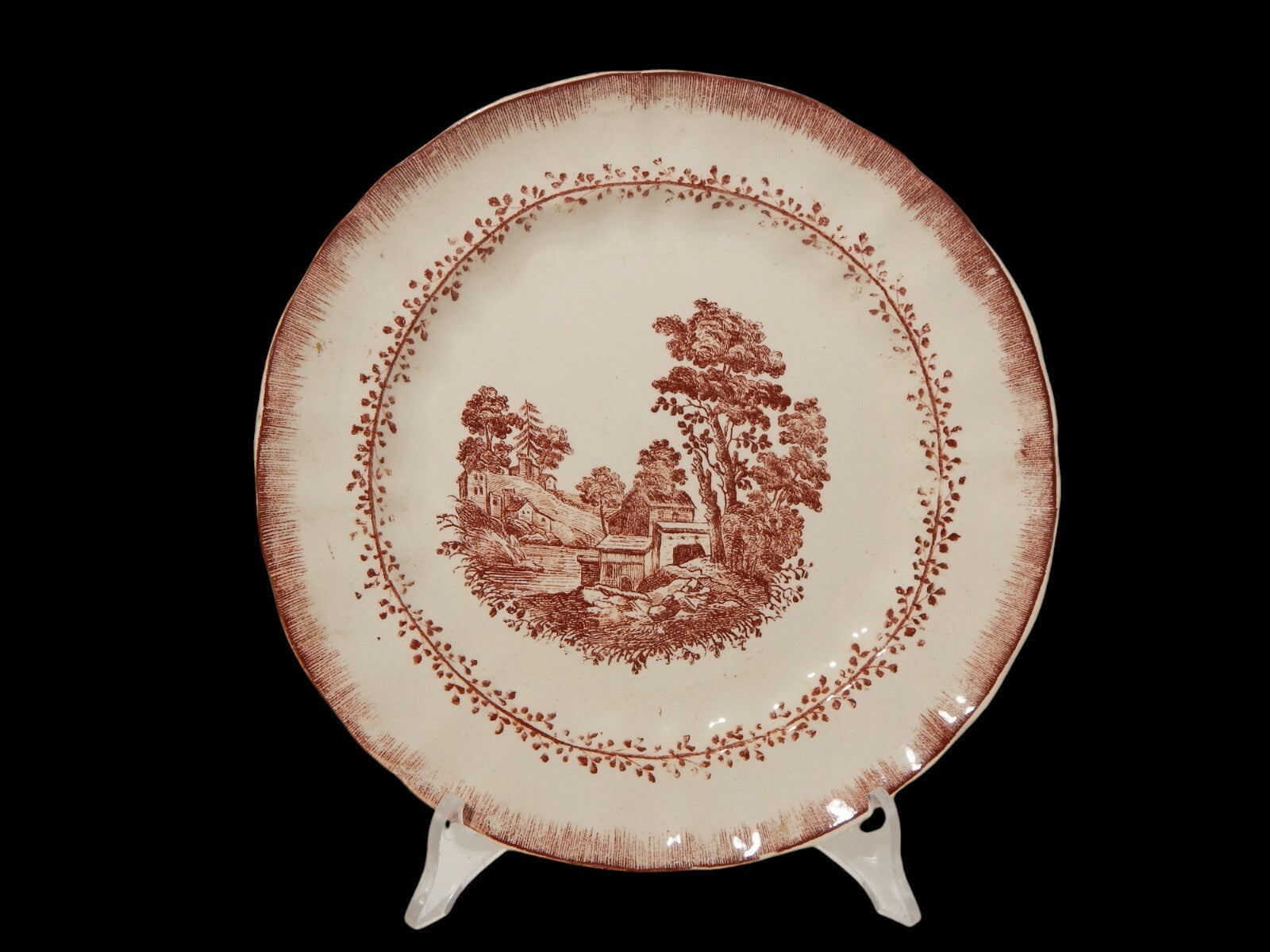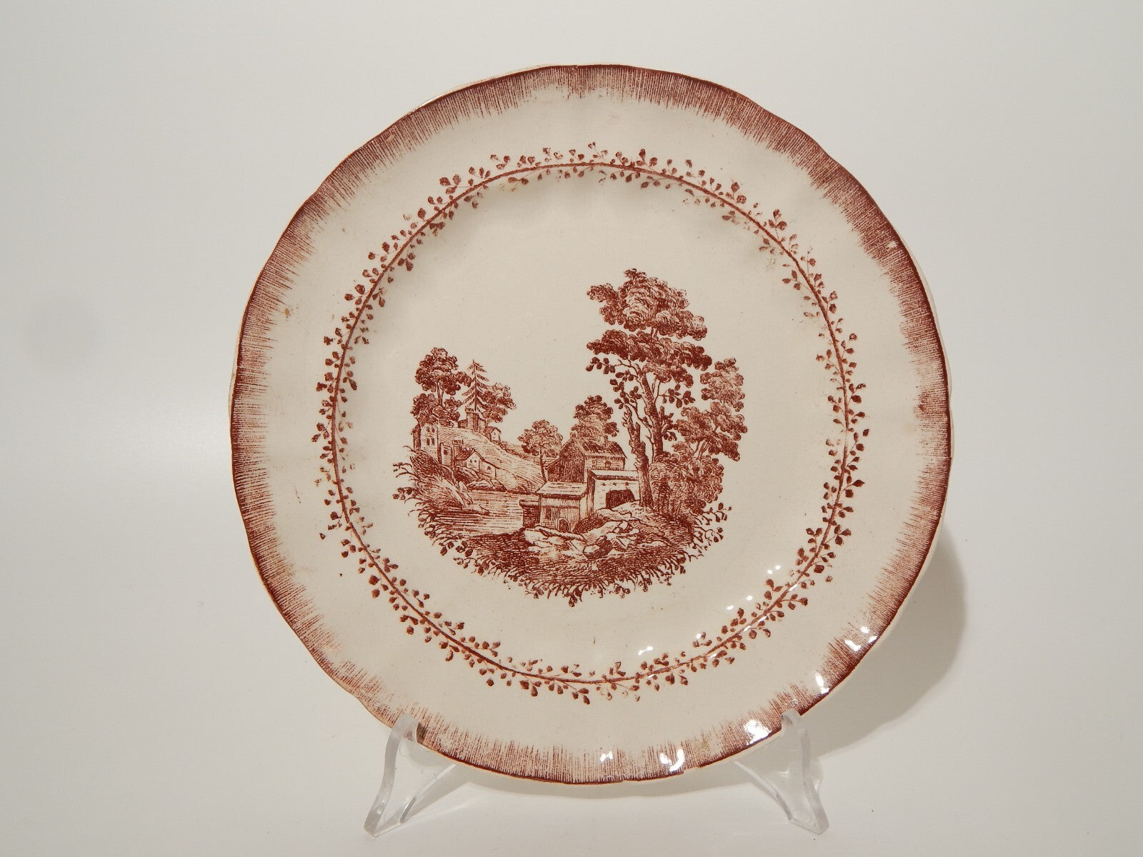 ANTICO PIATTO SOCIETA' CERAMICA RICHARD MILANO PAESAGGIO STAMPA A MANO cm 21,5