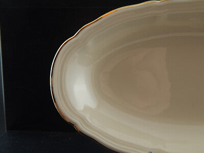 In questa inserzione viene presentato un antico piatto ovale, raviera o piccolo vassoio risalente agli anni '30 in porcellana color avorio rifinito in oro zecchino, realizzato dalla famosa manifattura tedesca Seltmann Weiden Bavaria nel modello Marie Luise