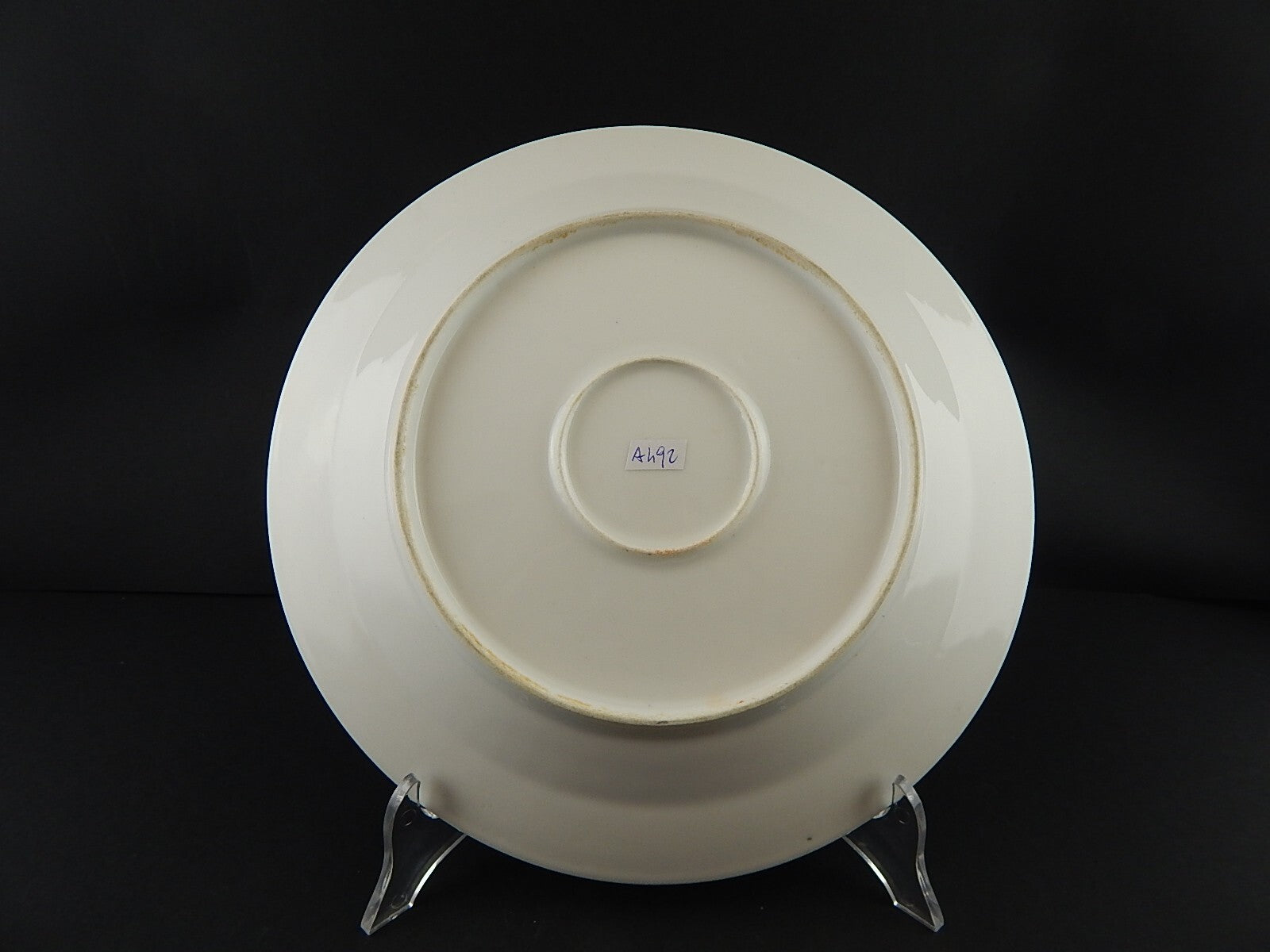 ANTICO PIATTO VASSOIO ROTONDO PORCELLANA PARIGI BIANCA BLU ORO NAPOLEONE III