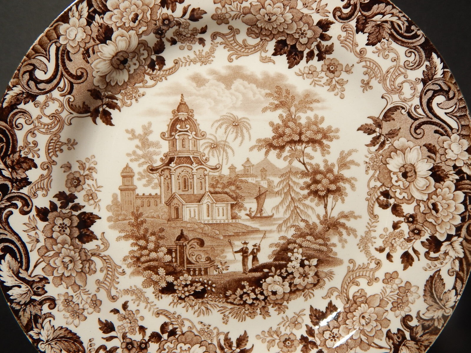 Il piatto con un raro disegno ispirato all'oriente stampato a mano è stato realizzato a metà del 1800 e misura 20,5 cm. di diametro.