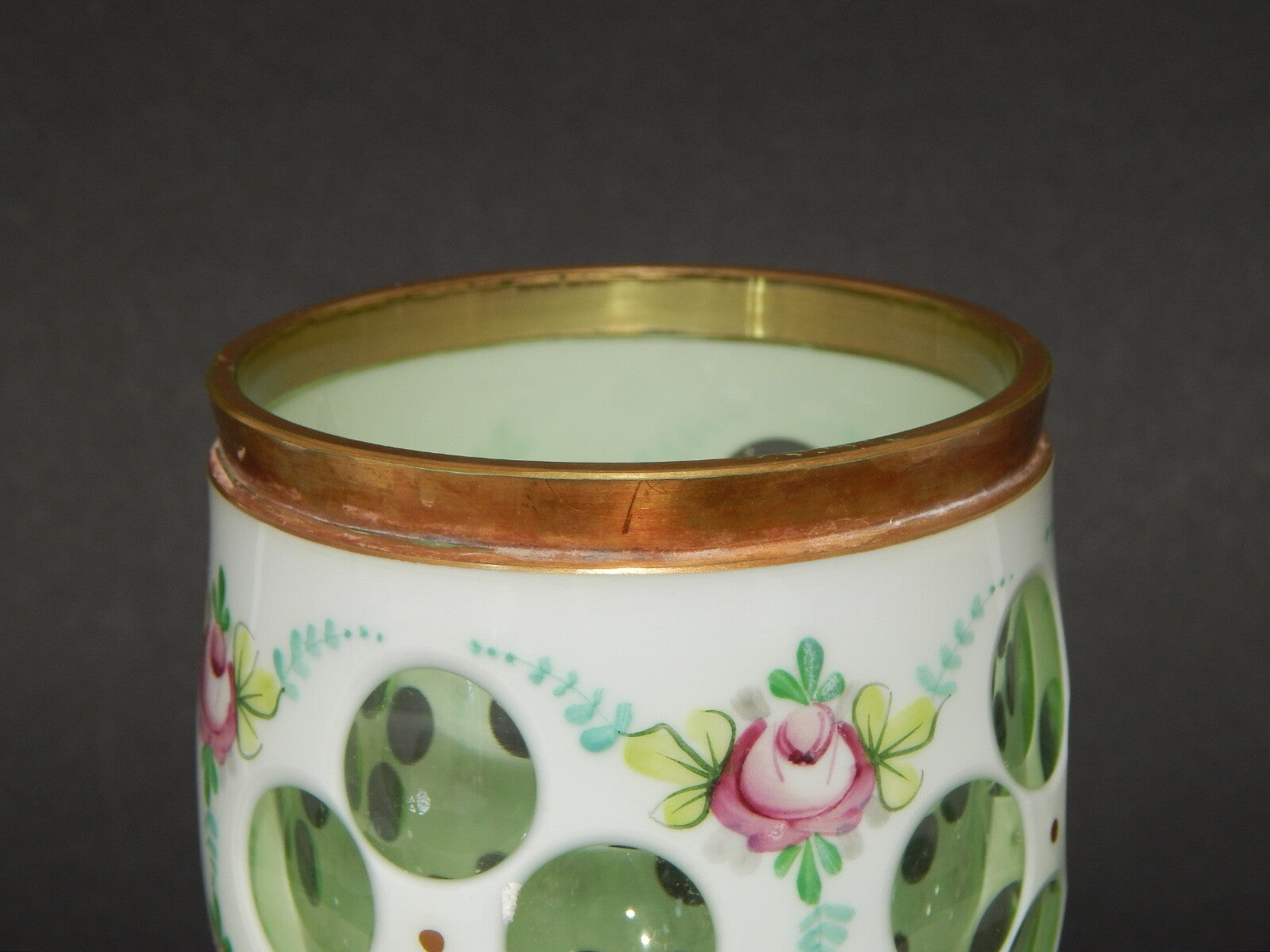 Questo boccale rappresenta un esempio straordinario dell'eleganza e della maestria degli artigiani boemi. Ideale per collezionisti di vetro antico o per chi desidera arricchire la propria casa con un oggetto di grande valore storico e artistico.