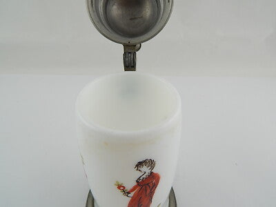 ANTICO PREZIOSO BIEDERMEIER XIX SECOLO BOCCALE BIRRA VETRO OPALINO DIPINTO MANO#