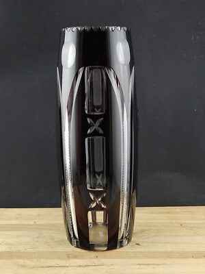 ANTICO PREZIOSO IMPORTANTE VASO CRISTALLO ART DECO BOEMIA MOLATO INCISO