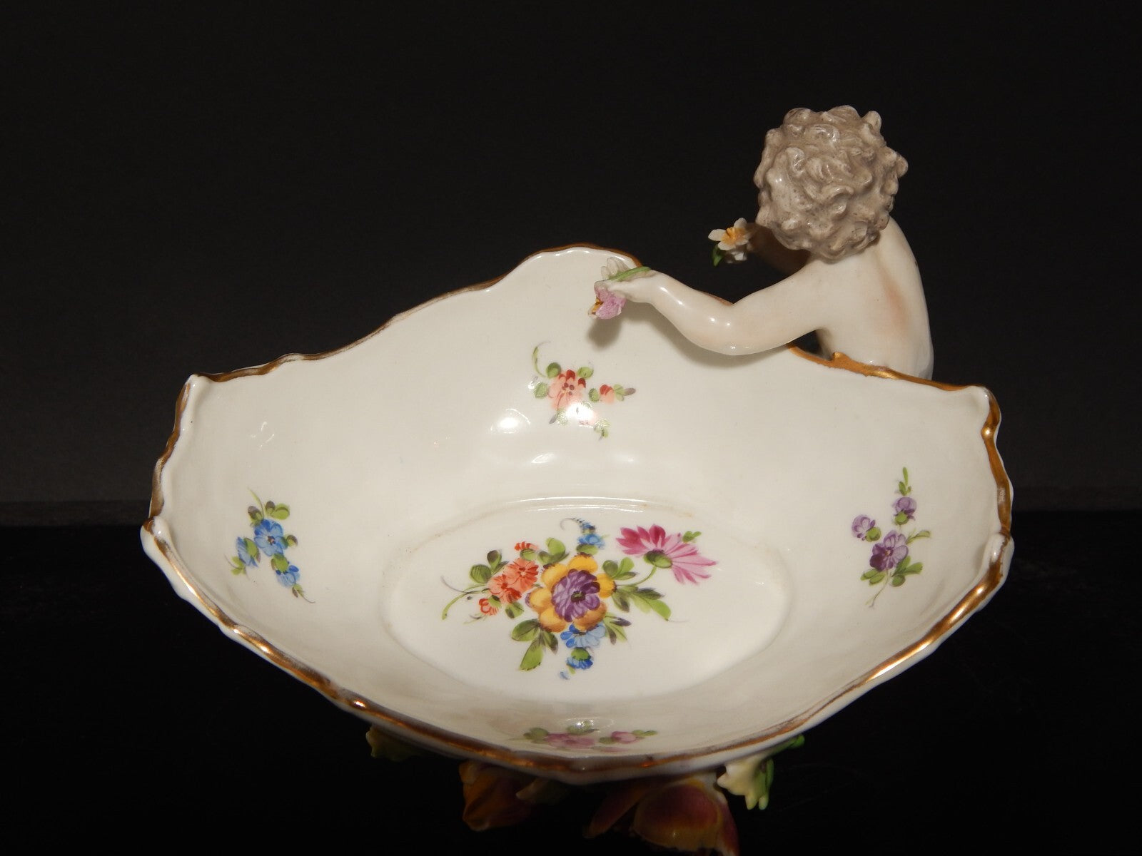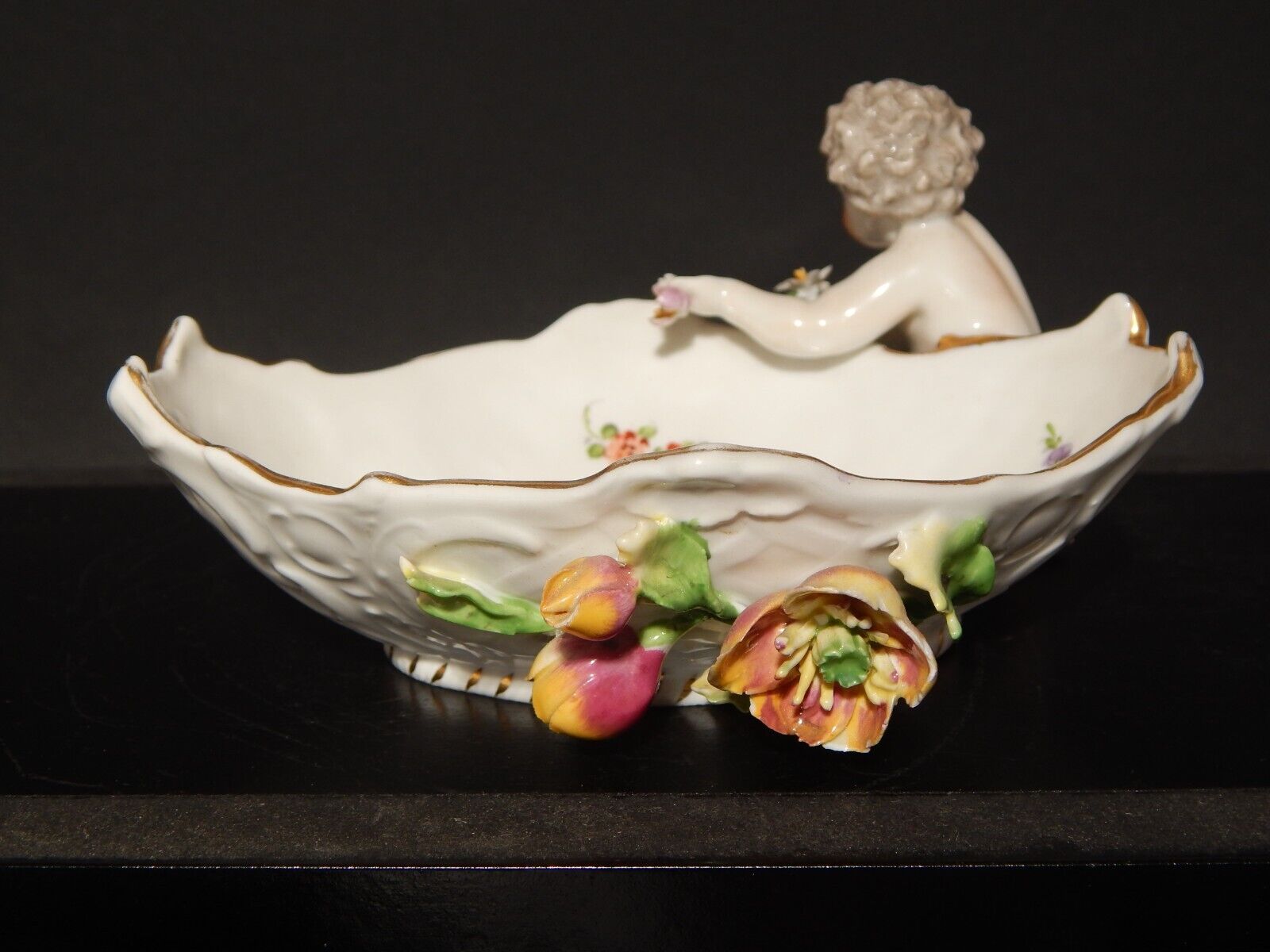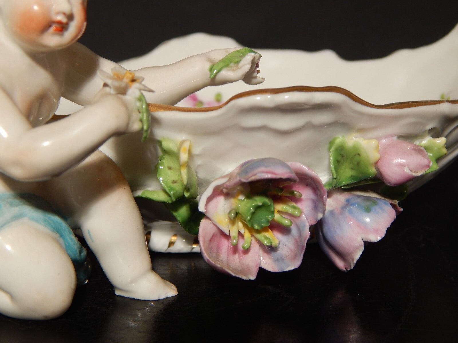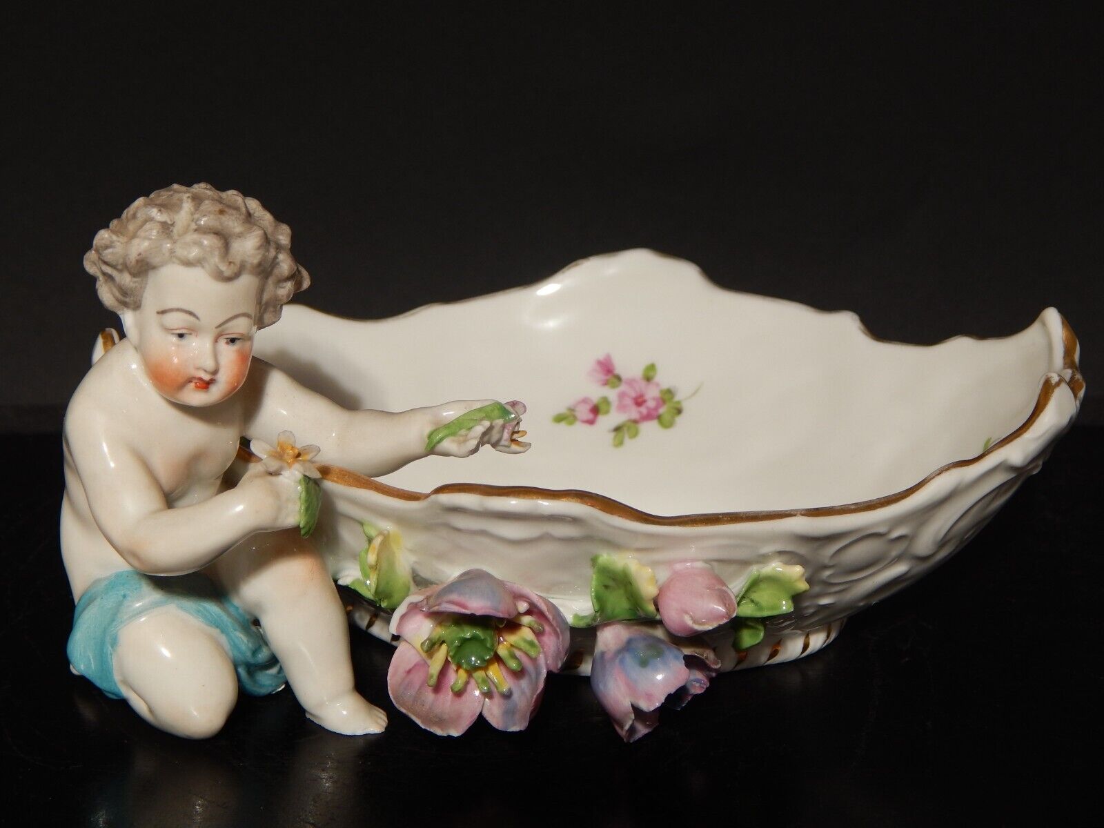 ANTICO PREZIOSO PUTTO CON CIOTOLA PORCELLANA DRESDEN CARL THIEME PRIMO 900