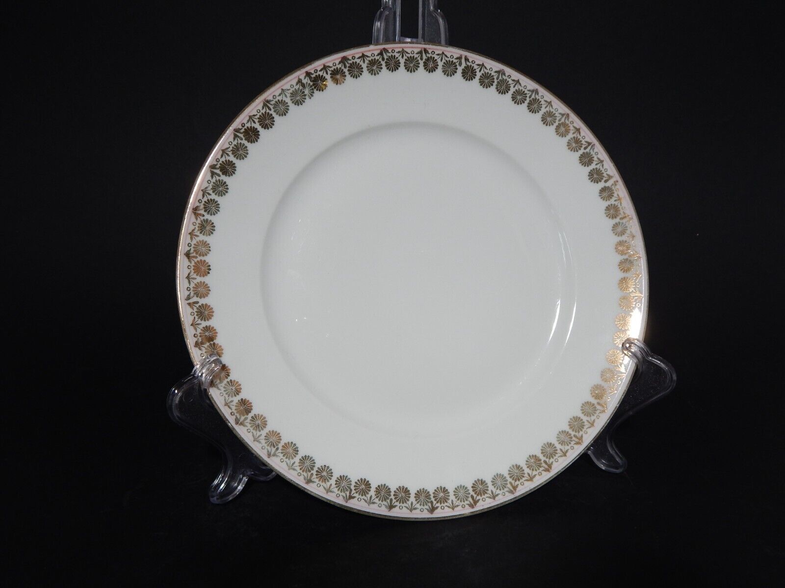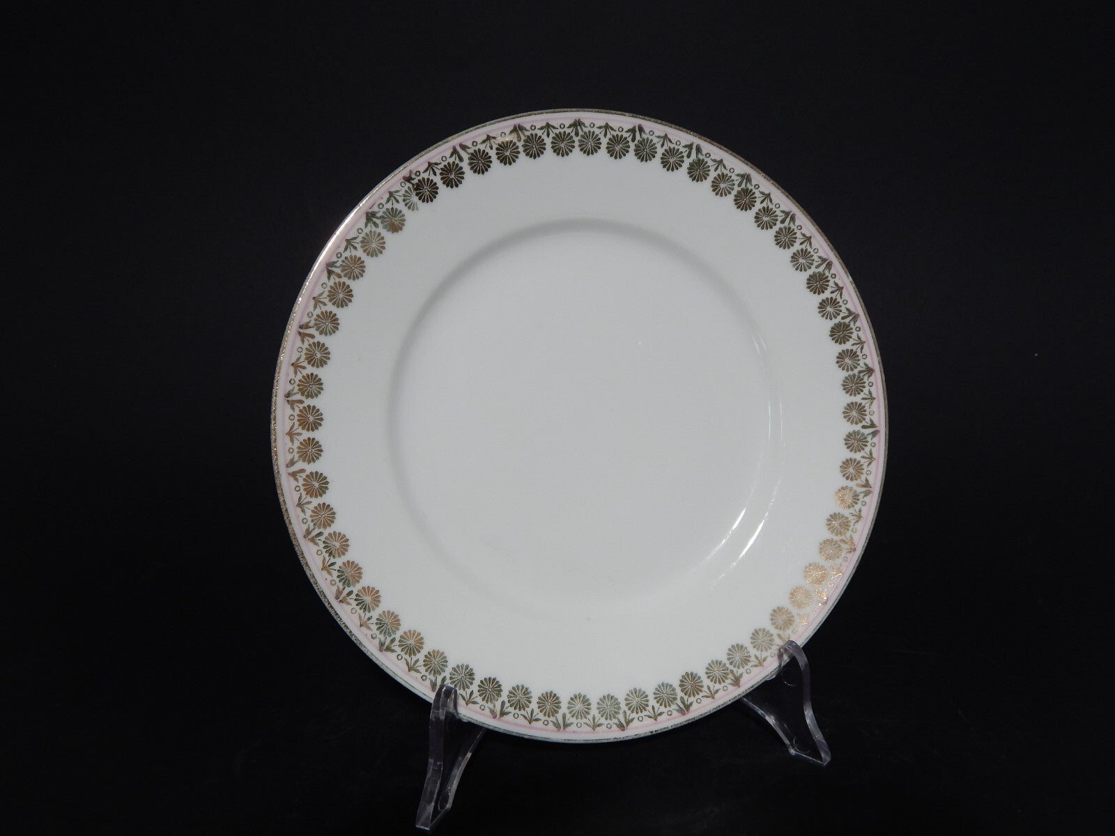 Il servizio in porcellana bianca è decorato a mano con profilo rosa e in oro zecchino