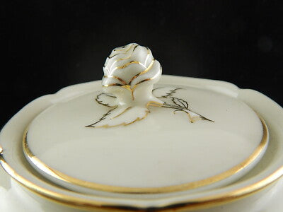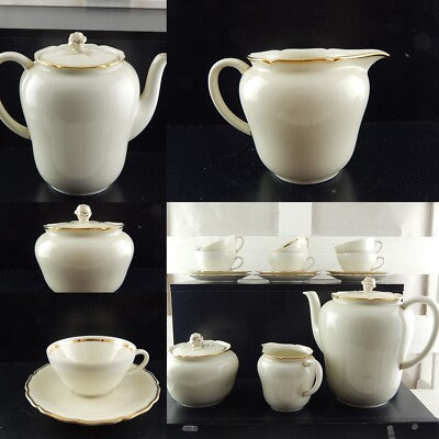 In questa inserzione viene presentato un antico servizio da caffè in porcellana color avorio con profilo in oro zecchino, è composto da 6 tazze con piattino, una lattiera, una zuccheriera e una caffettiera, realizzato nel 1930 dalla manifattura tedesca Bavaria Seltmann Weiden