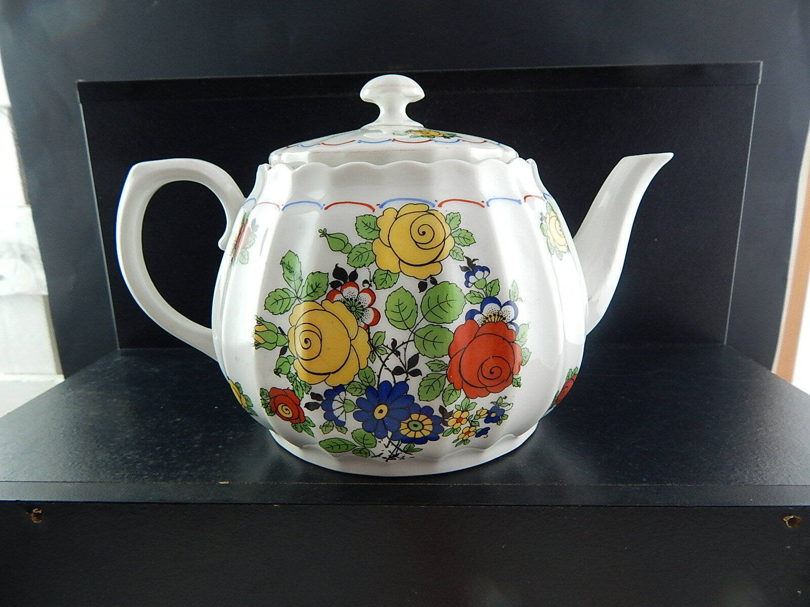 Teiera che misura 23 cm dal manico al becco e 15 cm di altezza