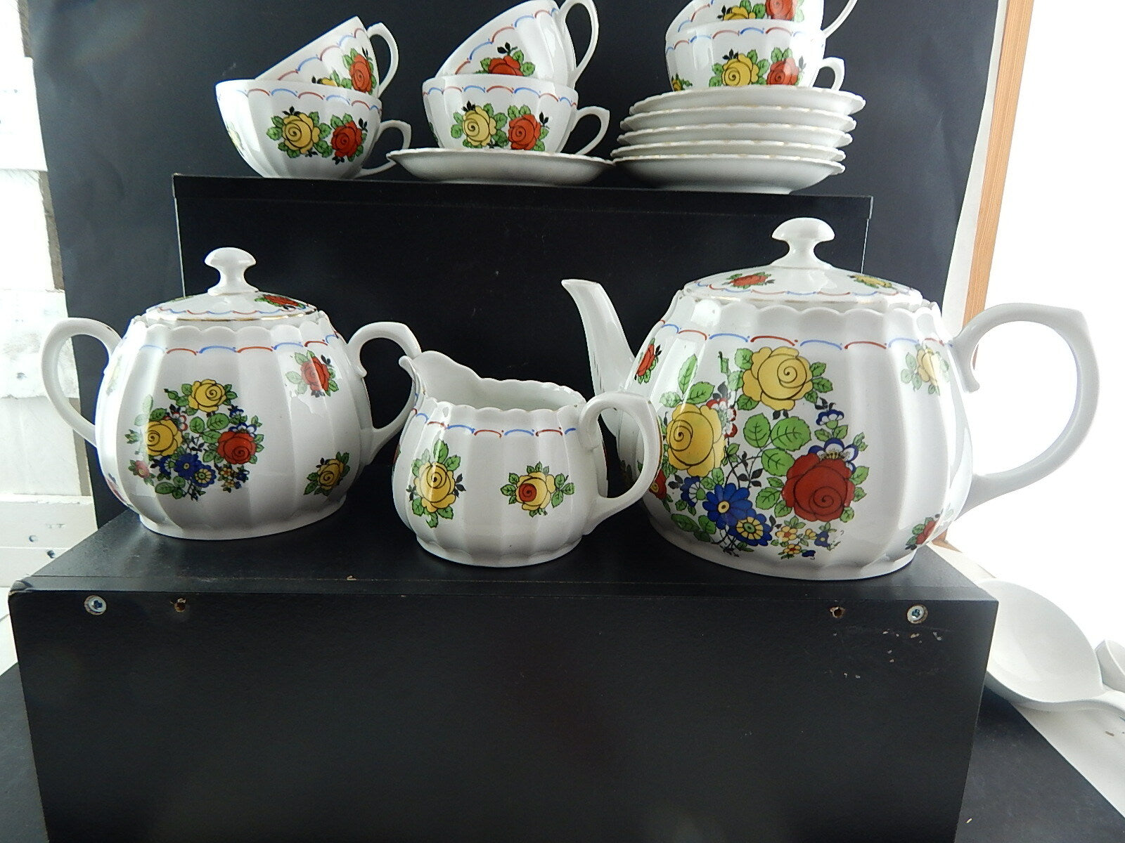 In questa inserzione viene presentato un antico servizio da tè realizzato in un’eccelente porcellana nei primi anni del 1900 dalla rinomata manifattura tedesca Württemberg BAUER & PFEIFFER