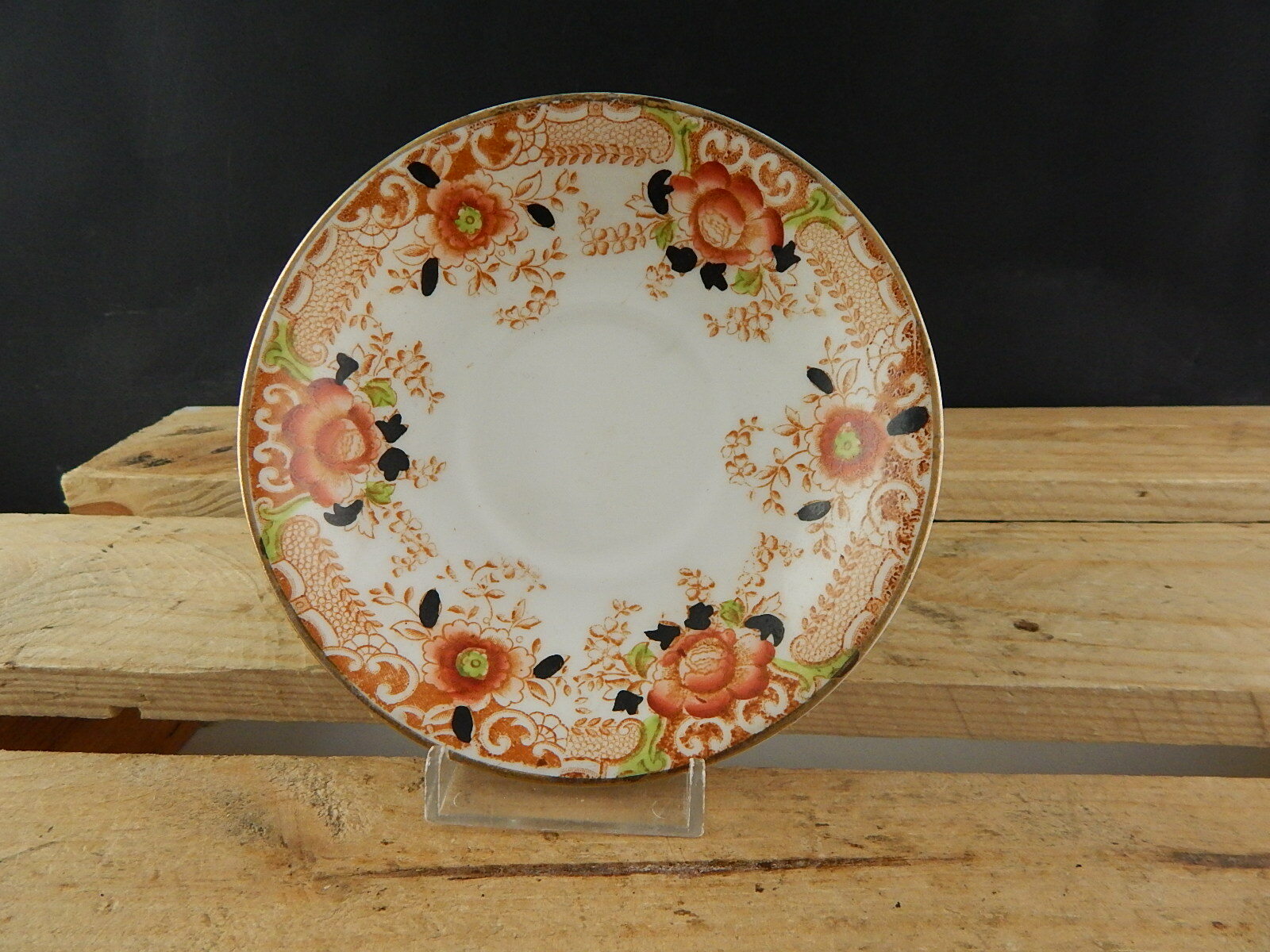 ANTICO PREZIOSO TRIO TAZZA TÈ 2 PIATTI PORCELLANA INGLESE EPOCA VITTORIANA #5919