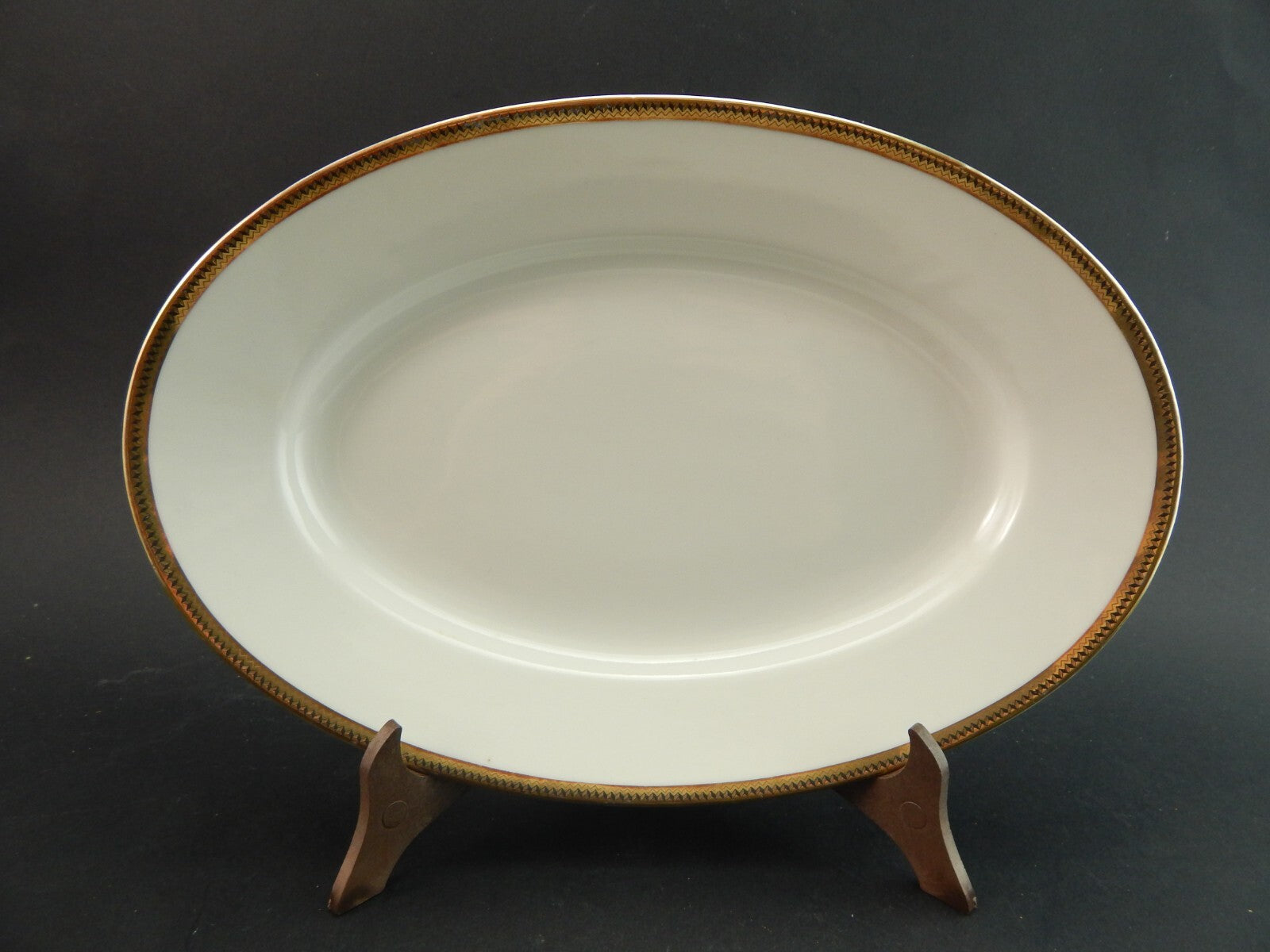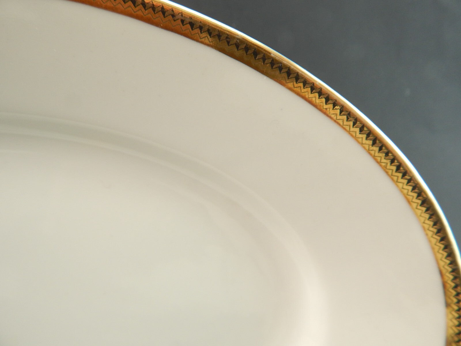 In questa inserzione viene presentato un vassoio ovale in porcellana realizzato dalla manifattura Richard Ginori decorazione di Doccia nel 1939. Il vassoio in porcellana colore avorio è decorato con un bordo in oro zecchino e nero.