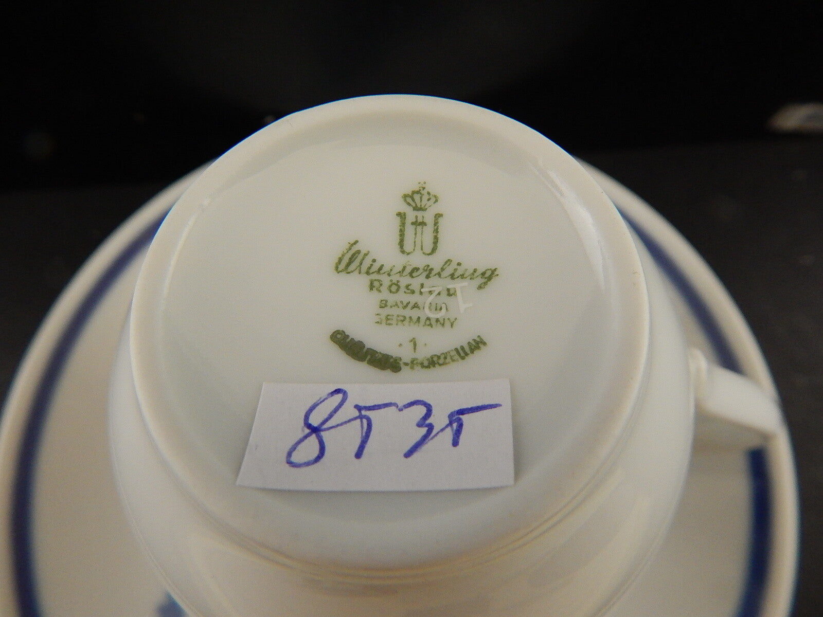 ANTICO RARA TAZZA E PIATTINO PORCELLANA BIANCA FIORI BLU WINTERLING BAVARIA