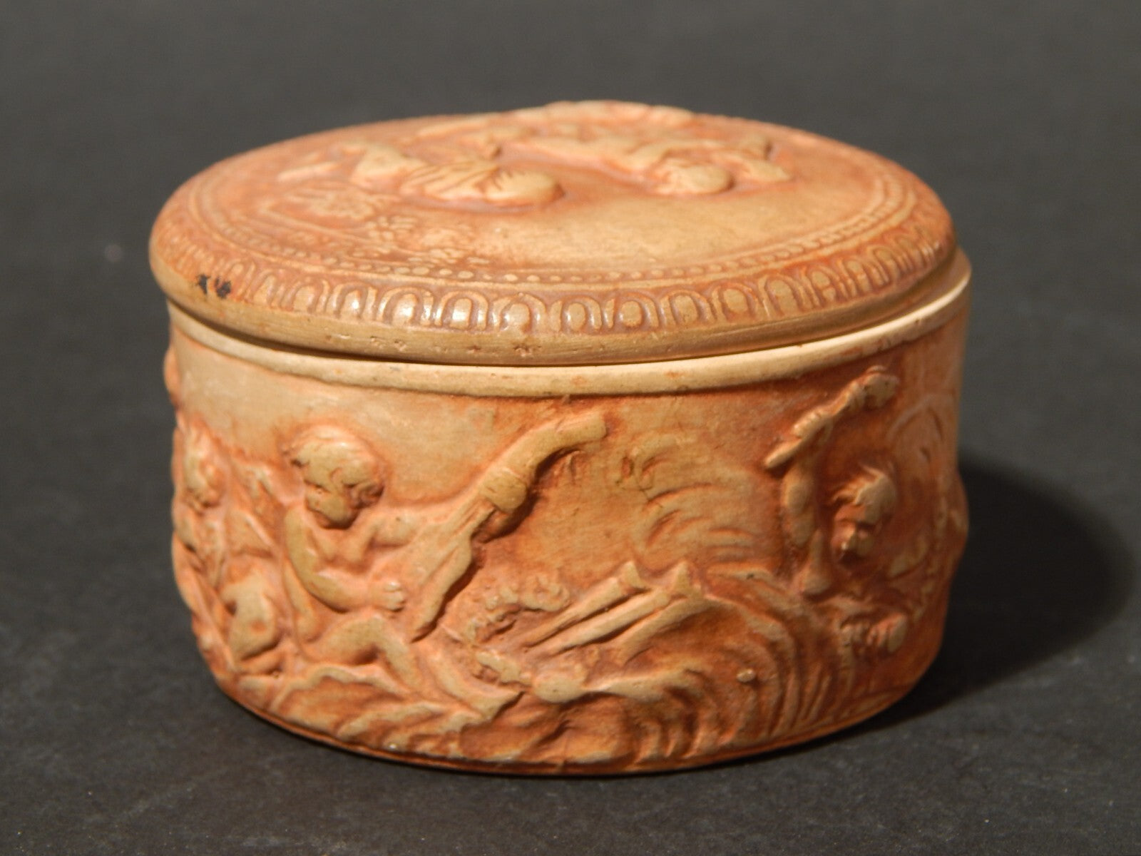 In questa inserzione viene presentata una antica scatola o cofanetto in ceramica con bassorilievi realizzato dalla famosa manifattura di Signa