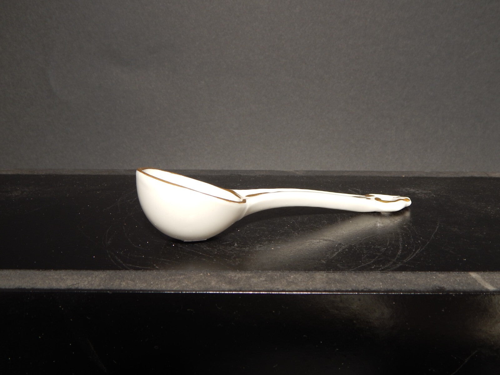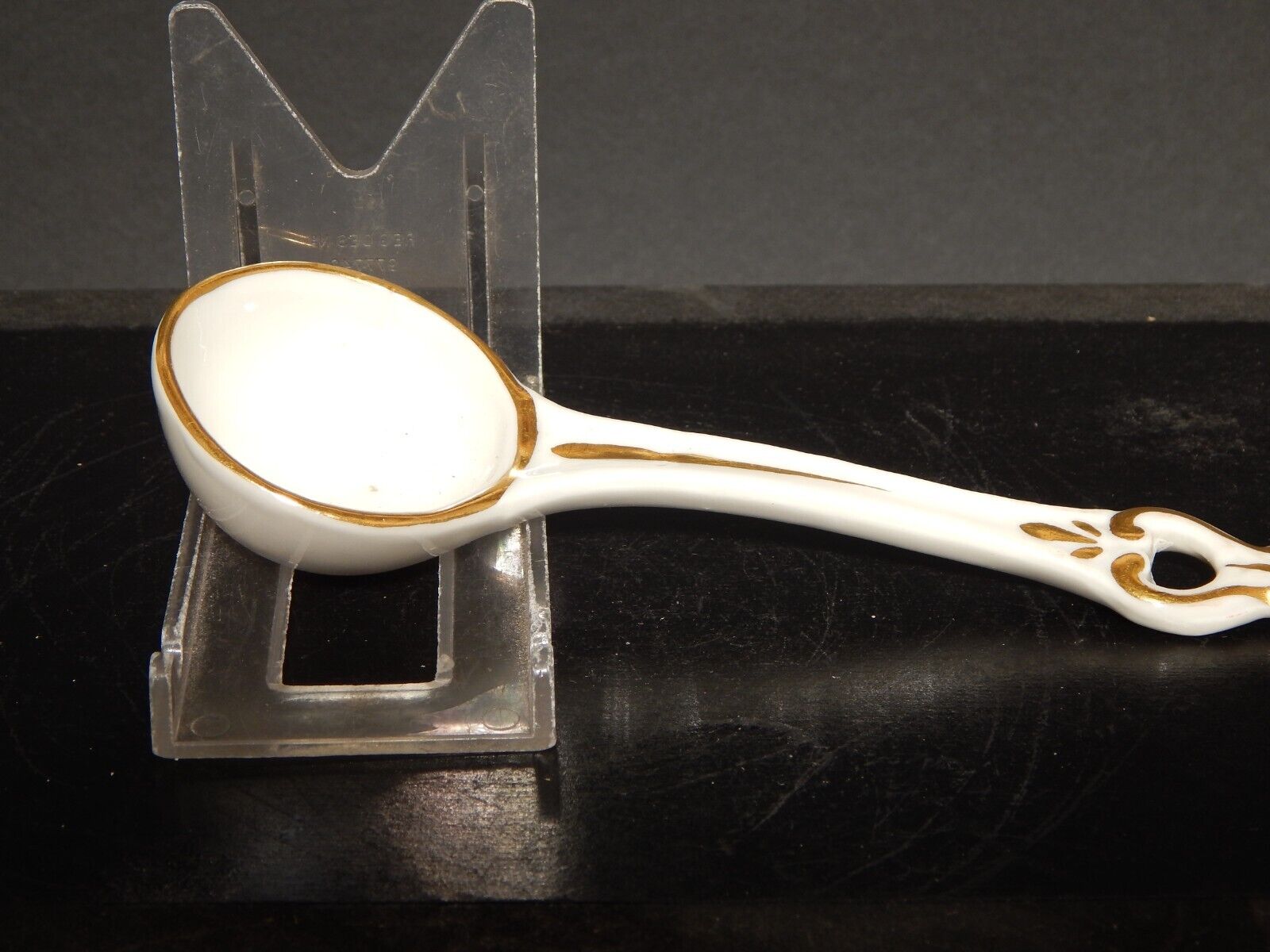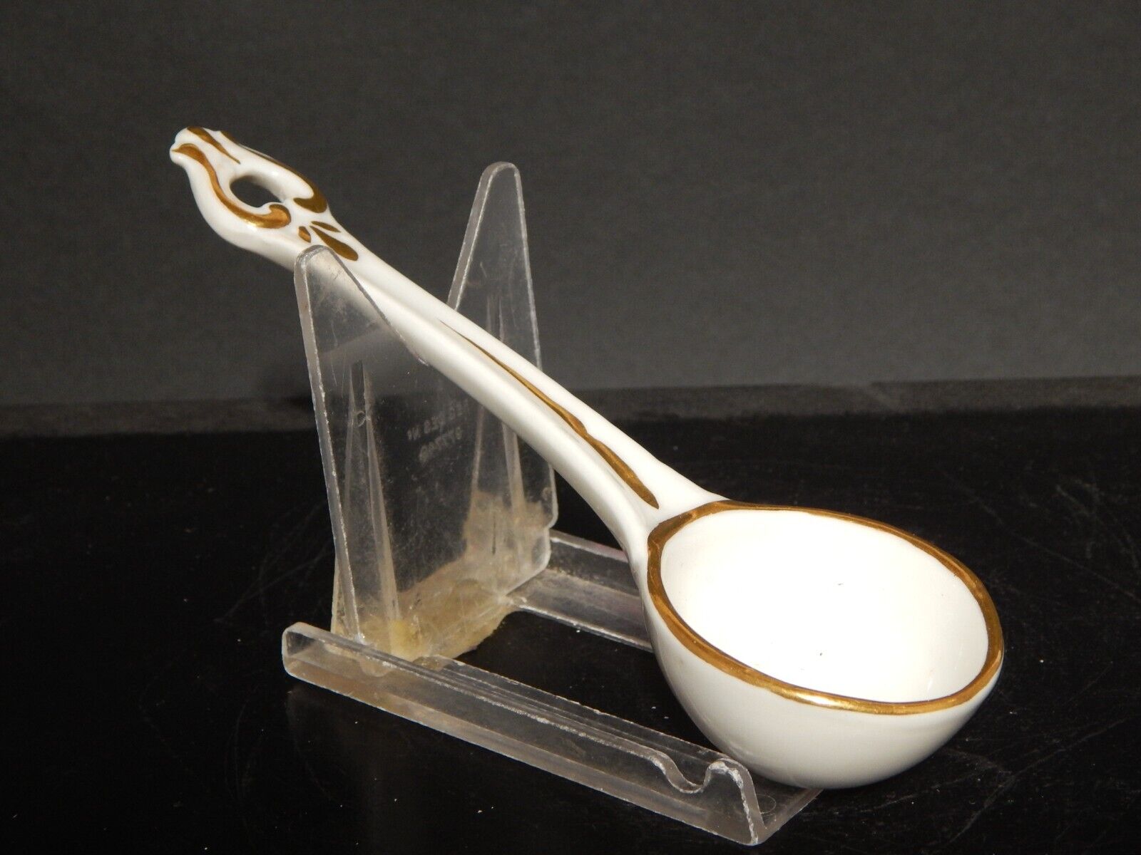 ANTICO RARO CUCCHIAIO DA SALSIERA IN PORCELLANA BIANCA CON DECORO IN ORO #1501